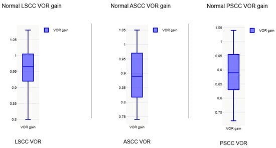 Average normal VOR gain in lateral, anterior, and posterior semicircular canals n = 20; VOR—vestibulo-ocular reflex, LSCC—Lateral semicircular canal, ASCC—anterior semicircular canal, PSCC—posterior semicircular canal.