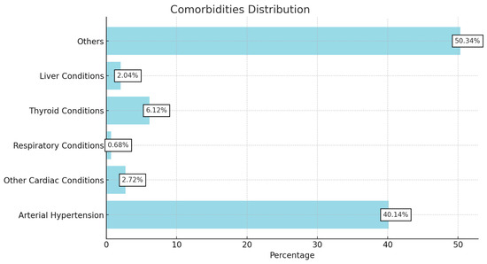 Among the 121 participants in the study, a notable proportion reported additional comorbidities commonly associated with diabetes. Specifically, 59 participants (40.1%) had arterial hypertension, which significantly increases cardiovascular risks when coupled with diabetes. Nine participants (6.1%) reported thyroid disorders, potentially complicating metabolic regulation and diabetes management. Additionally, four participants (2.7%) had ischemic cardiopathy, highlighting the heightened prevalence of cardiovascular diseases in the diabetic population. Other reported comorbidities were also respiratory conditions, glaucoma, and gut conditions (Figure 1).