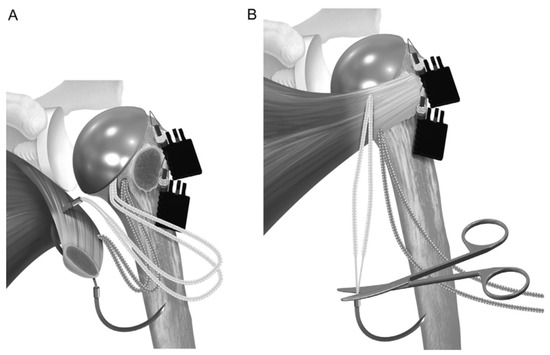 - Denard, P.J.; Ardebol, J.; Pasqualini, I.; Horinek, J.L.; Dines, J.; Tokish, J.M. Compressed autograft biceps tendon augmentation of subscapularis repair following shoulder arthroplasty. JSES Rev. Rep. Tech. 2022, 2, 535–538. [Google Scholar] [CrossRef] [PubMed]