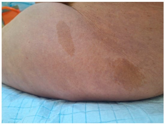 - Cîrstoiu, M.M.; Turcan, N.; Munteanu, O.; Grădinaru-Fometescu, D.; Nedelea, F.; Zaharia, M.; Cretu, B.; Simionescu, A.; Dumitru, A.; Costache, M.; et al. Pregnancy Associated with Neurofibromatosis Type I and Becker Nevus Syndrome—Case Report. J. Case Rep. Med. 2022, 11, 39–42. [Google Scholar]