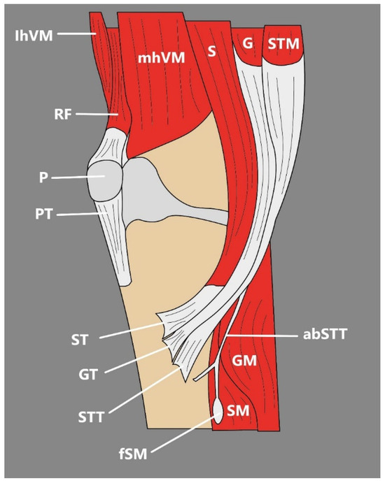 - Olewnik, Ł.; Podgórski, M.; Polguj, M. An Unusual Insertion of an Accessory Band of the Semitendinosus Tendon: Case Report and Review of the Literature. Folia Morphol. 2020, 79, 645–648. [Google Scholar] [CrossRef] [PubMed]