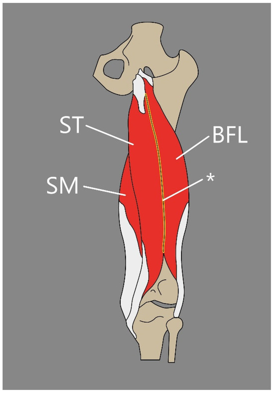 - Tsunekawa, R.; Hirai, S.; Hatayama, N.; Yokota, H.; Naito, M.; Nakano, T. A Rare Third Head of the Biceps Femoris in the Posterior Thigh. Anat. Sci. Int. 2021, 96, 157–160. [Google Scholar] [CrossRef]