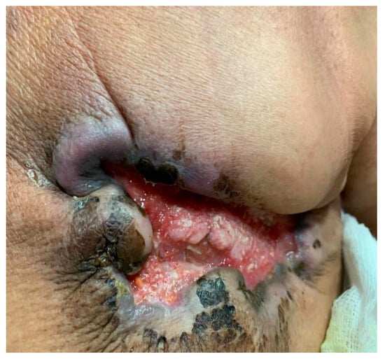 From the clinical point of view, we achieved a great outcome with the treatment plan chosen in accordance with the MTD. Due to the patient’s good adherence to the treatment approach, her medical condition has significantly improved. During the follow-up period, the ulceration resolved in increments while the bleeding stopped. Moreover, healing tissue started growing in the perimeter of the initial lesion, with improved skin elasticity, less retraction, and less inflammation, finally resulting in healthy cicatricial tissues (Figure 3).