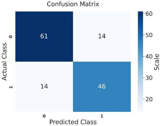 Examining the confusion matrix for the test set of the progressive motility group, the VGG-16 model correctly classified 54 out of 71 patients with asthenozoospermia. Among 69 patients with normal values, the model accurately identified 62 as normal and misclassified 7 as asthenozoospermic (Figure 5).