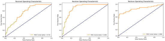 The ROC curves obtained from the test set for the sperm concentration, motility, and morphology groups are presented in Figure 7.