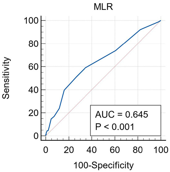 ROC curve analysis for MLR. ROC: receiver operating characteristics. MLR: monocyte-lymphocyte ratio.