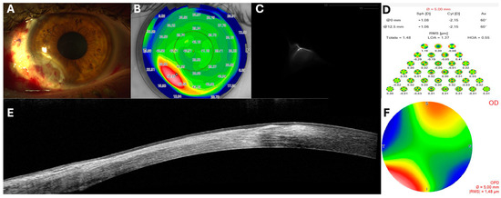 - Messina, M.; Poddi, M.; De Santi, N.; Bianchi, E.; Cagini, C. Combined superficial keratectomy, alcohol delamination and amniotic membrane patch with fibrin glue in Salzmann nodular degeneration. Eur. J. Ophthalmol. 2024, 34, 1281–1285. [Google Scholar] [CrossRef] [PubMed]
