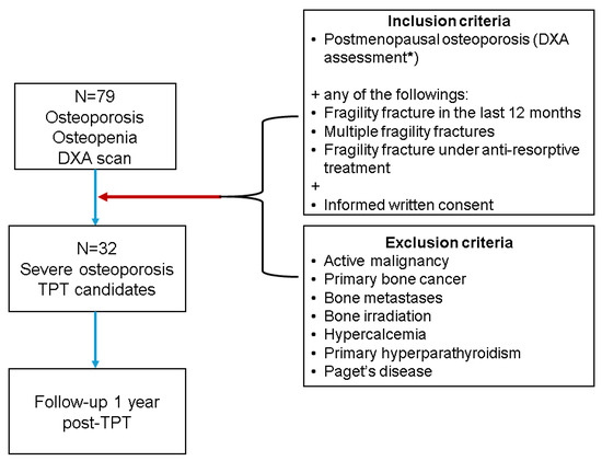 - Munekawa, C.; Hashimoto, Y.; Kitagawa, N.; Osaka, T.; Hamaguchi, M.; Fukui, M. Effect of Teriparatide on Bone Mineral Density and Trabecular Bone Score in Type 2 Diabetic Patients with Osteoporosis: A Retrospective Cohort Study. Medicina 2022, 58, 481. [Google Scholar] [CrossRef] [PubMed]