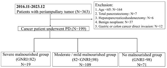 A flow chart of the patient selection process. PD, pancreaticoduodenectomy; GNRI, Geriatric Nutritional Risk Index.