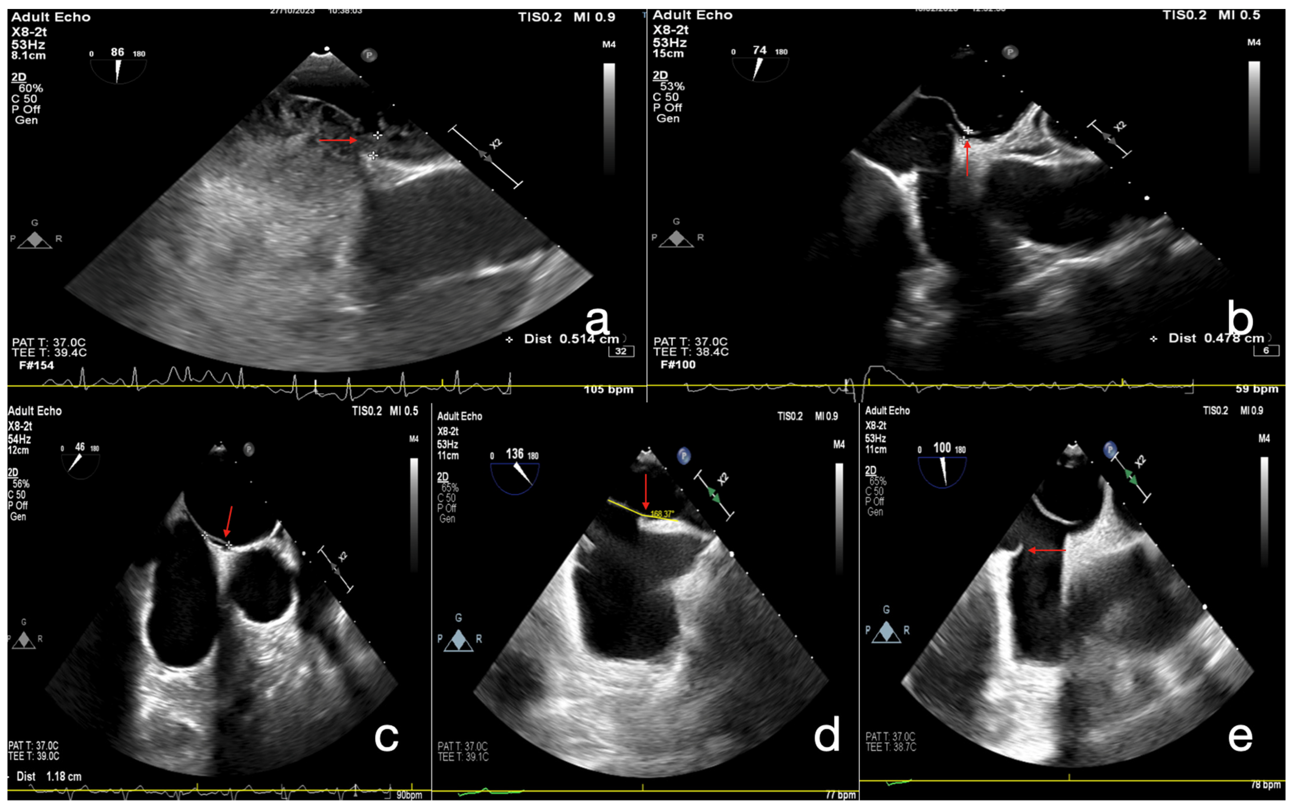 - Wang, L.; Sun, H.; Shen, H. Anatomical Significance of the Patent Foramen Ovale by Real-Time 3D TEE in Cryptogenic Stroke and Migraine. Echocardiography 2024, 41, e70018. [Google Scholar] [CrossRef] [PubMed]