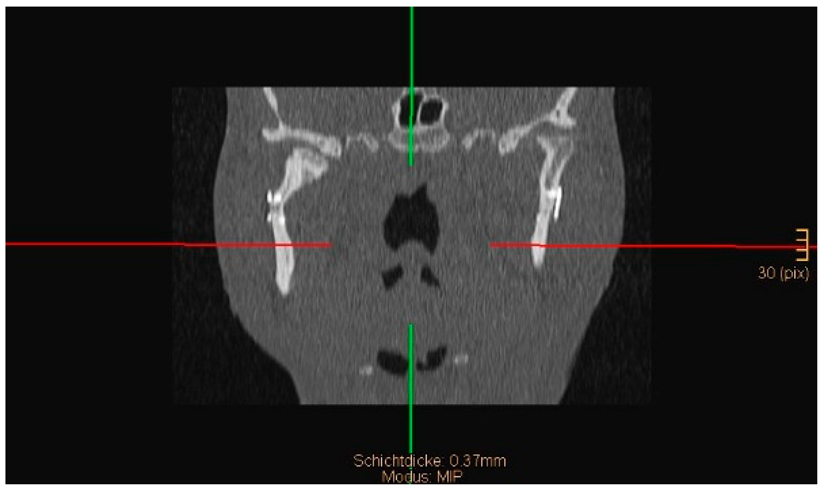The authors assessed the postoperative dental occlusion based on clinical findings and imaging, including cone-beam computer tomography (CBCT), panoramic (OPT), or computer tomography (CT). Clinically and radiographically, a return to the pre-injury occlusion or to a closed occlusion class I was considered ideal; a “slight” (<1 mm) open bite, if not present before the fracture, was deemed acceptable; an open bite of more than 1 mm was considered insufficient. The presence of a cross bite, if not present before the fracture, was also considered a marker of suboptimal reposition.