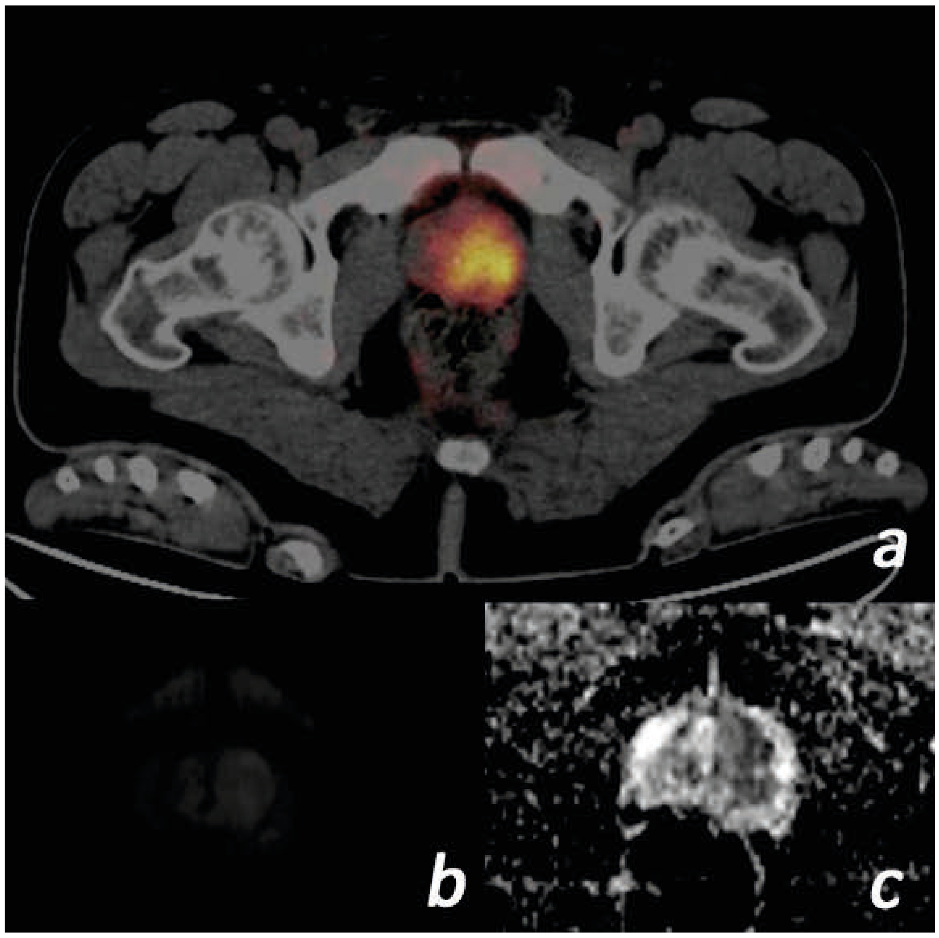 - Uslu-Beşli, L.; Bakır, B.; Asa, S.; Güner, E.; Demirdağ, Ç.; Şahin, O.E.; Karayel, E.; Sağer, M.S.; Sayman, H.B.; Sönmezoğlu, K. Correlation of SUVmax and Apparent Diffusion Coefficient Values Detected by Ga-68 PSMA PET/MRI in Primary Prostate Lesions and Their Significance in Lymph Node Metastasis: Preliminary Results of an on-Going Study. Mol. Imaging Radionucl. Ther. 2019, 28, 104–111. [Google Scholar] [CrossRef]