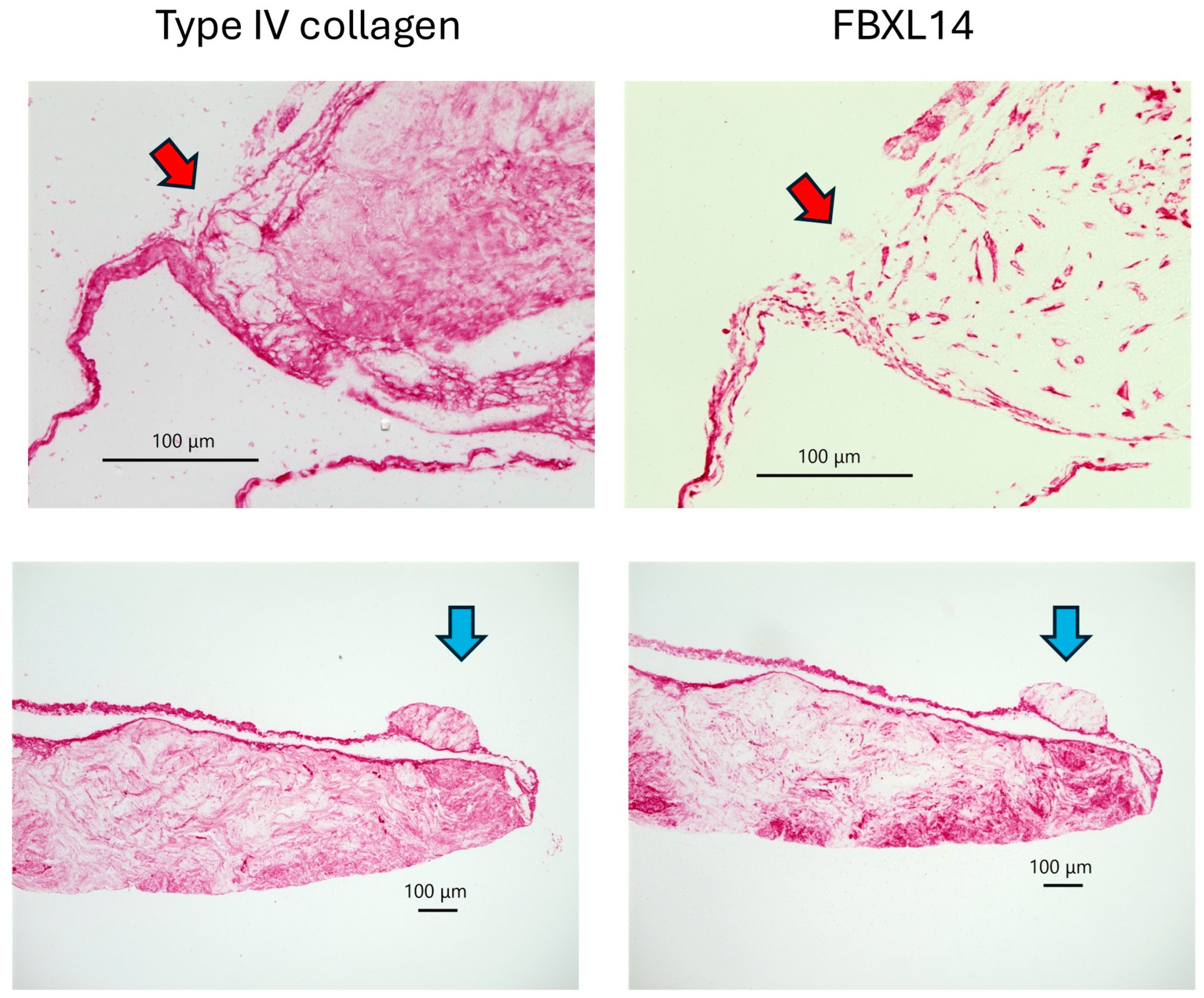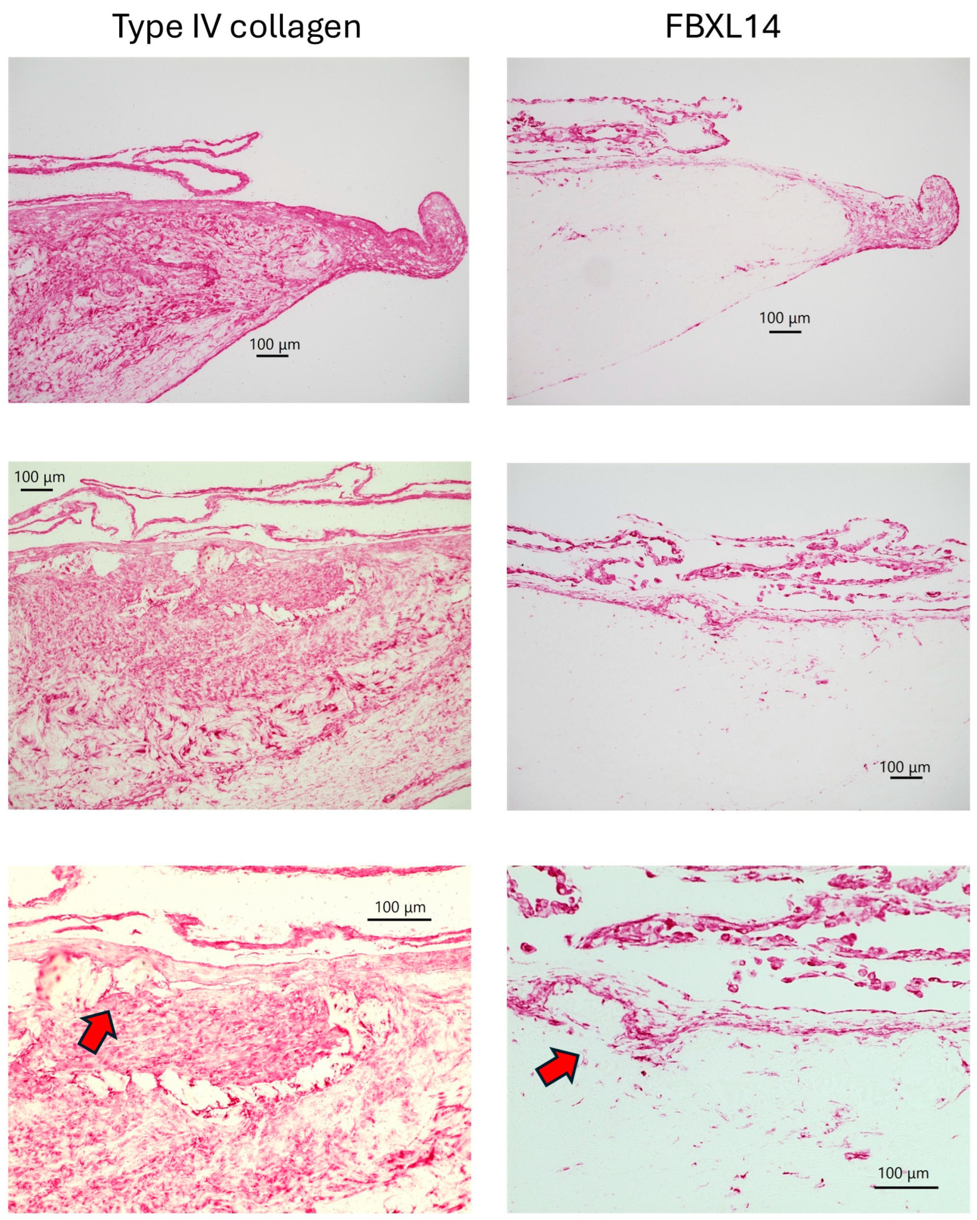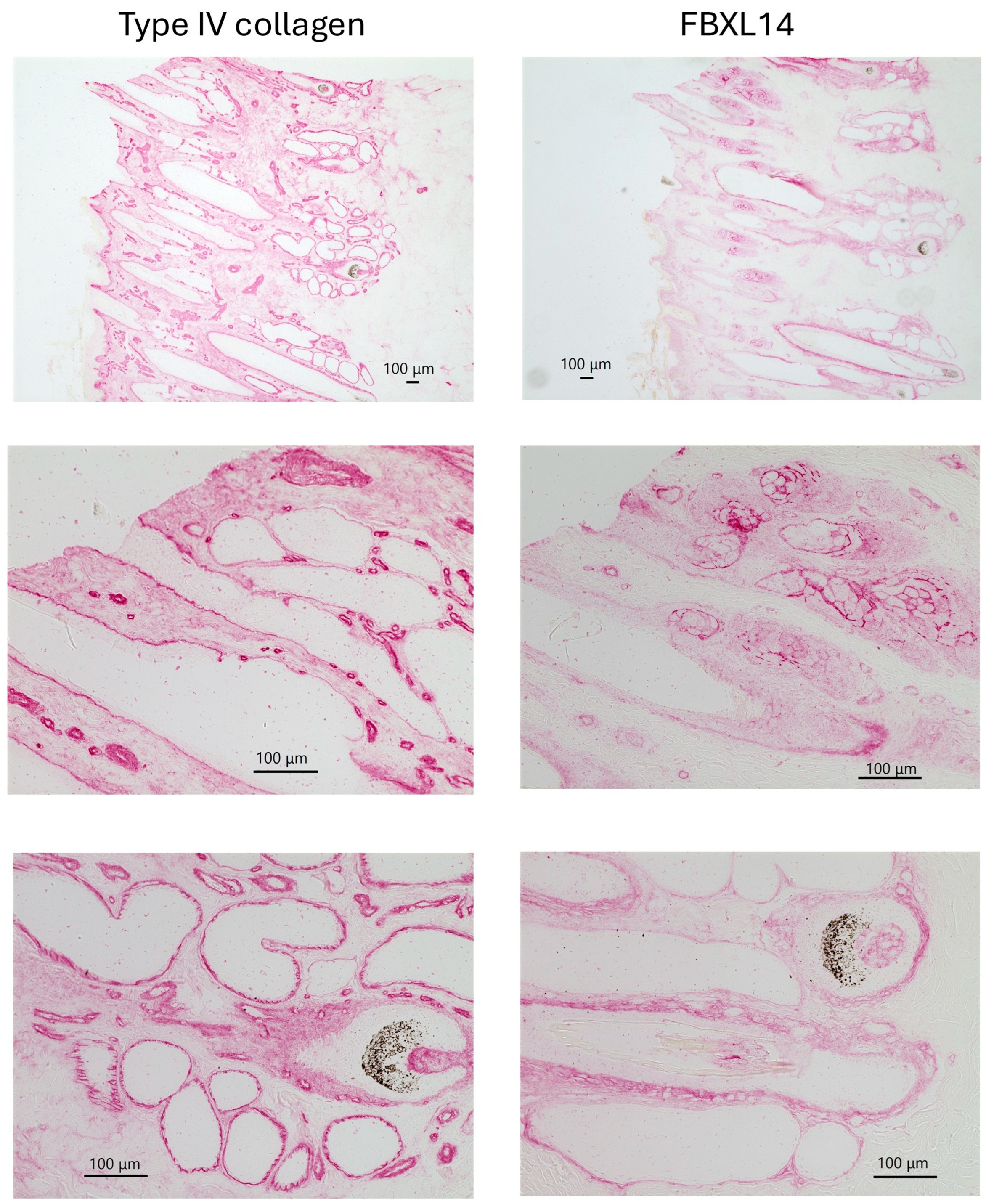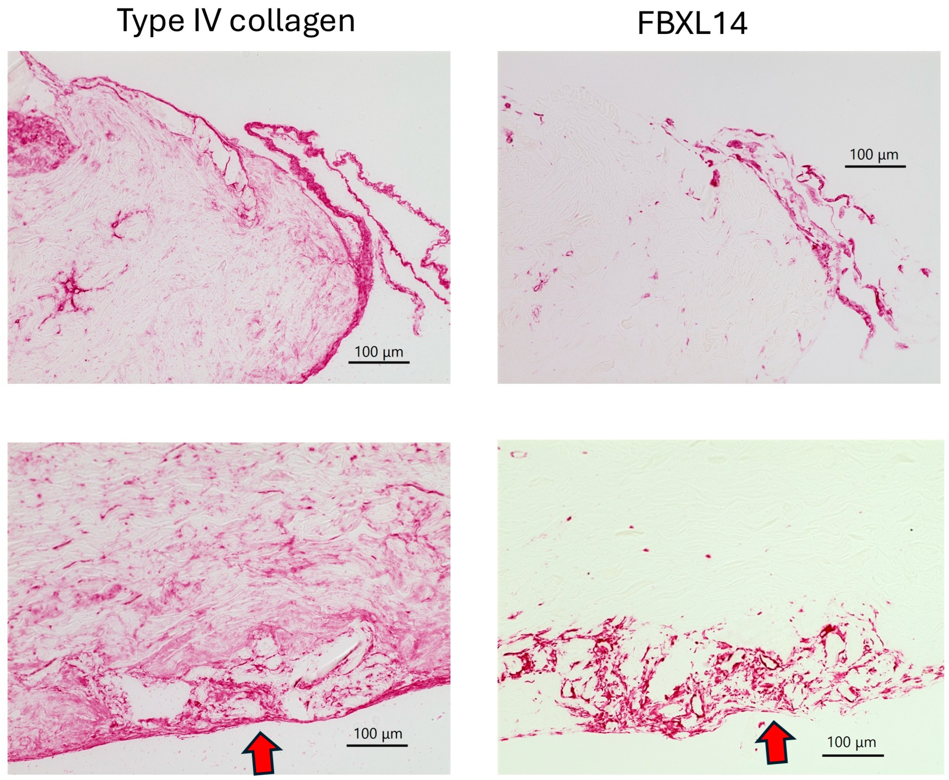 Figure 2. Comparison of immunohistochemistry results for type IV collagen and FBXL14 in bovine skin.