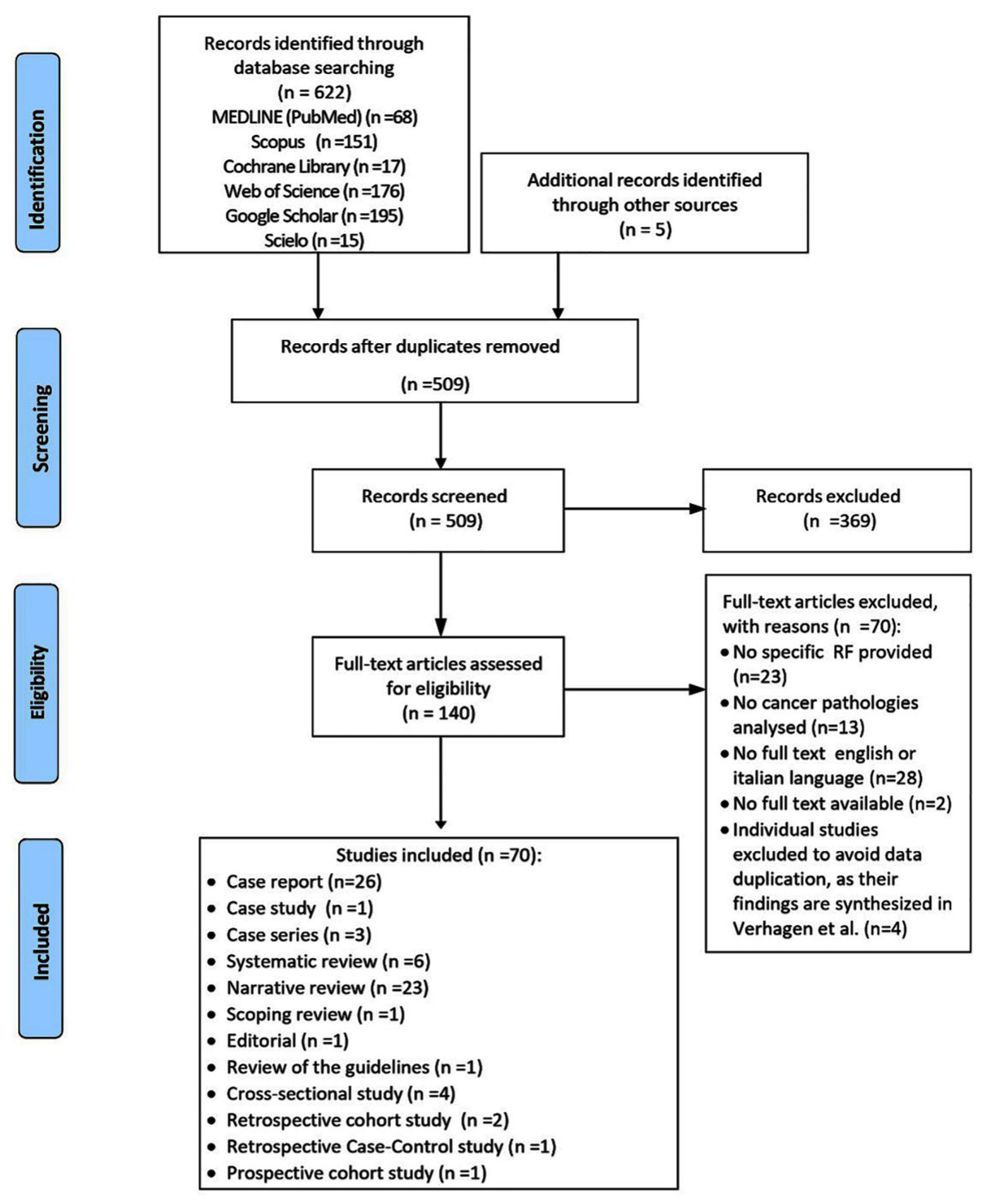 SCOPUS | (“low back pain” OR lumbago OR “lower back pain” OR “low backache” OR “low back ache”) AND (“differential diagnosis” OR diagnosis OR symptoms OR signs OR findings OR referral OR consultation OR “physical examination” OR inspection OR observation OR screening) AND (“red flag” OR “red herring” OR “specific pathology” OR “serious pathology” OR “serious disorder” OR “specific disorder” OR “serious disease” OR “specific disease”) AND (“tumor” OR cancer OR “malignancy” OR “neoplasm” | 151 |