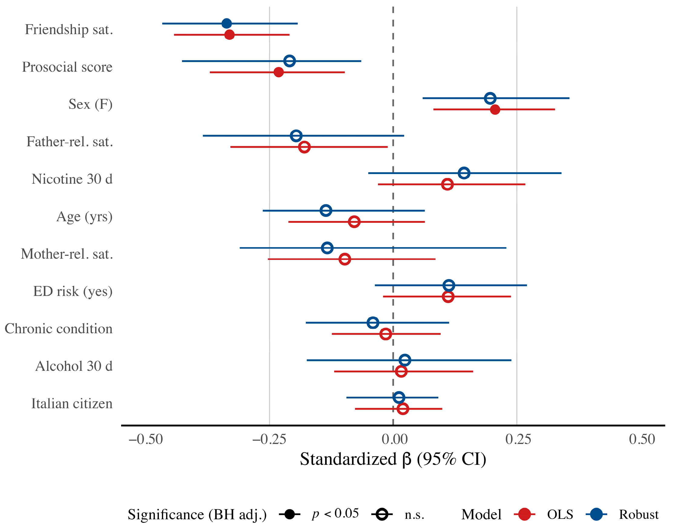Friendship satisfaction | −2.05 | (0.35) | [−2.71, −1.31] | <0.001 | −0.33 | 0.04 |