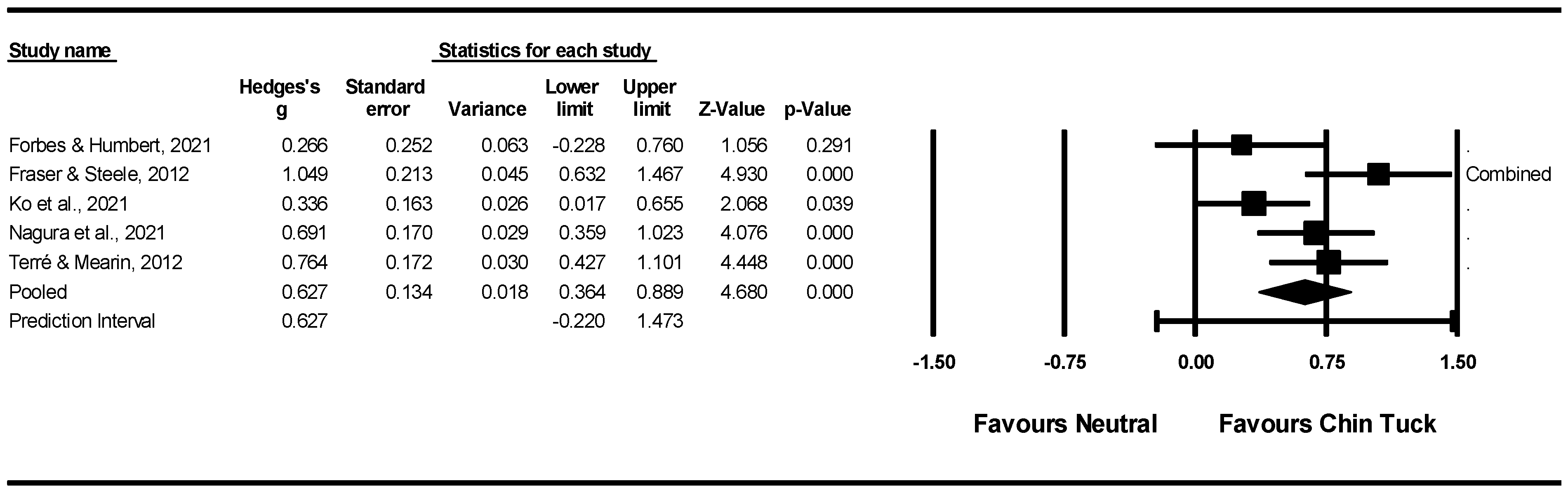 | McCullough & Kim, 2013 [43] | To determine the effects of the Mendelsohn manoeuvre on the distance the hyoid travels superiorly and anteriorly, and the impact on the mean width of the UES opening in stroke patients with dysphagia. | Secondary data analysis of McCullough 2012. | Secondary data analysis of McCullough 2012. | Primary outcomes VFSS