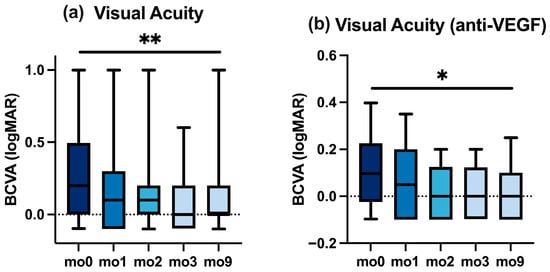 Chicago/Turabian StyleHafner, Michael, Tina R. Herold, Alexander Kufner, Franziska Eckardt, Ben Asani, Siegfried G. Priglinger, and Johannes Schiefelbein. 2025. "Extended Real-World Efficacy of Faricimab in Therapy-Resistant Macular Edema Due to Retinal Vein Occlusion: 9-Month Follow-Up Results" Journal of Clinical Medicine 14, no. 20: 7197. https://doi.org/10.3390/jcm14207197