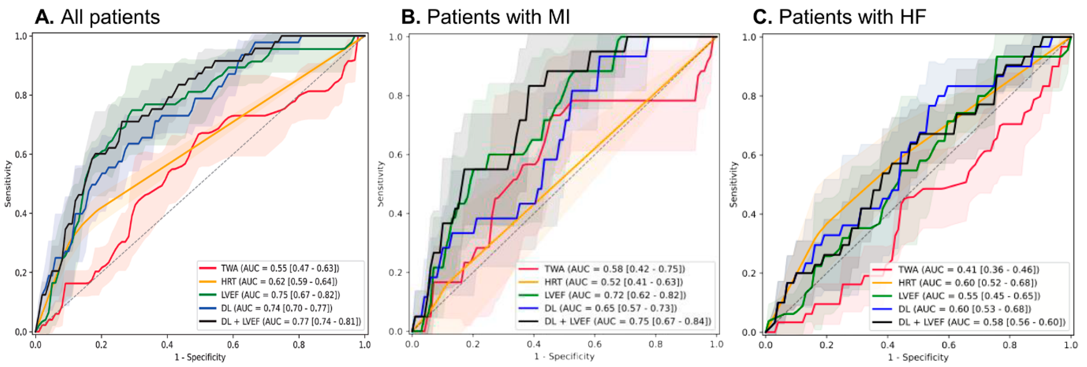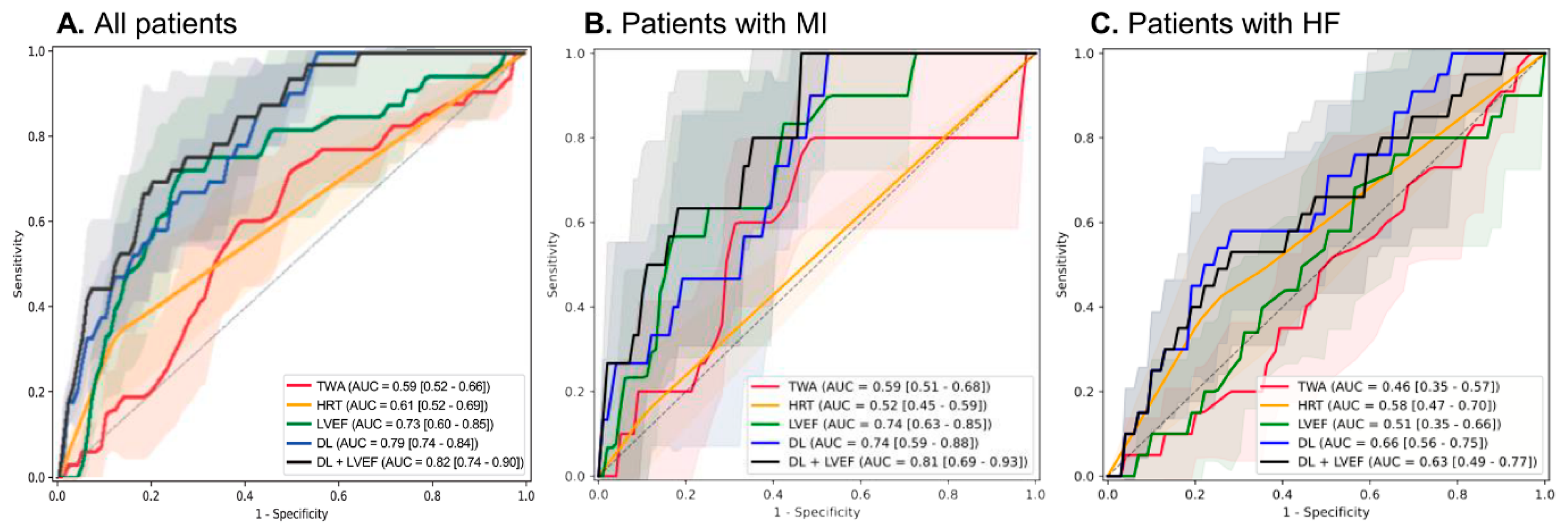 - Kim, J.Y.; Park, Y.J.; Park, S.-J.; Kim, J.; Park, K.-M.; On, Y.K.; Kim, J.S.; Nam, G.-B.; Lee, Y.S.; Kim, D.H.; et al. Noninvasive risk assessment and prediction of cardiac outcomes in patients with congestive heart failure or myocardial infarction. Heart Rhythm 2024, 22, 1030–1039. [Google Scholar] [CrossRef]