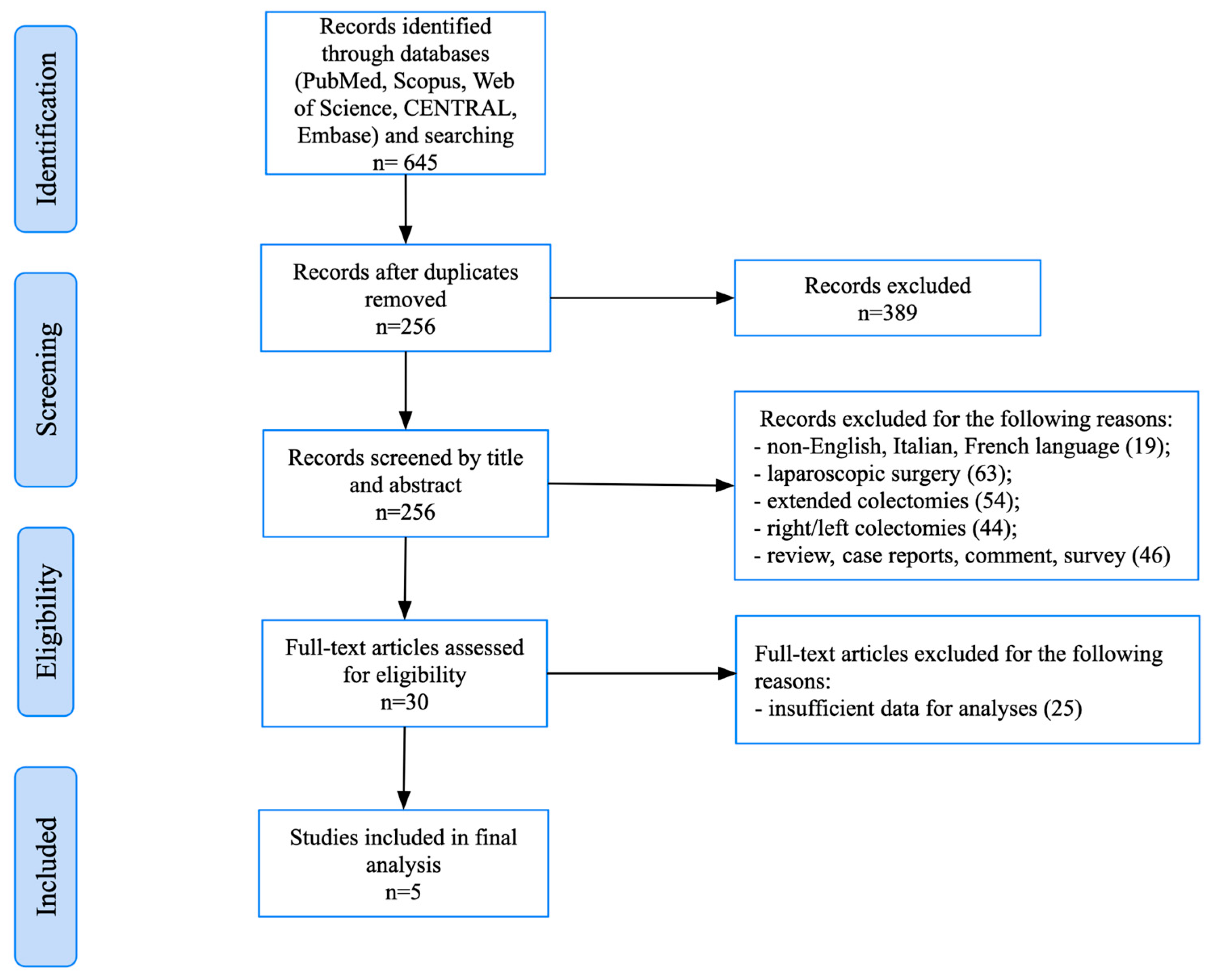 - Cao, Y.; He, M.; Chen, K.; Liu, Z.; Khlusov, D.I.; Khorobrykh, T.V.; Cao, X.; Panova, P.D.; Efetov, S.K.; Kazaryan, A.M. Short- and long-term outcomes after surgical treatment of 5918 patients with splenic flexure colon cancer by extended right colectomy, segmental colectomy and left colectomy: A systematic review and meta-analysis. Front. Oncol. 2024, 14, 1244693. [Google Scholar] [CrossRef] [PubMed]