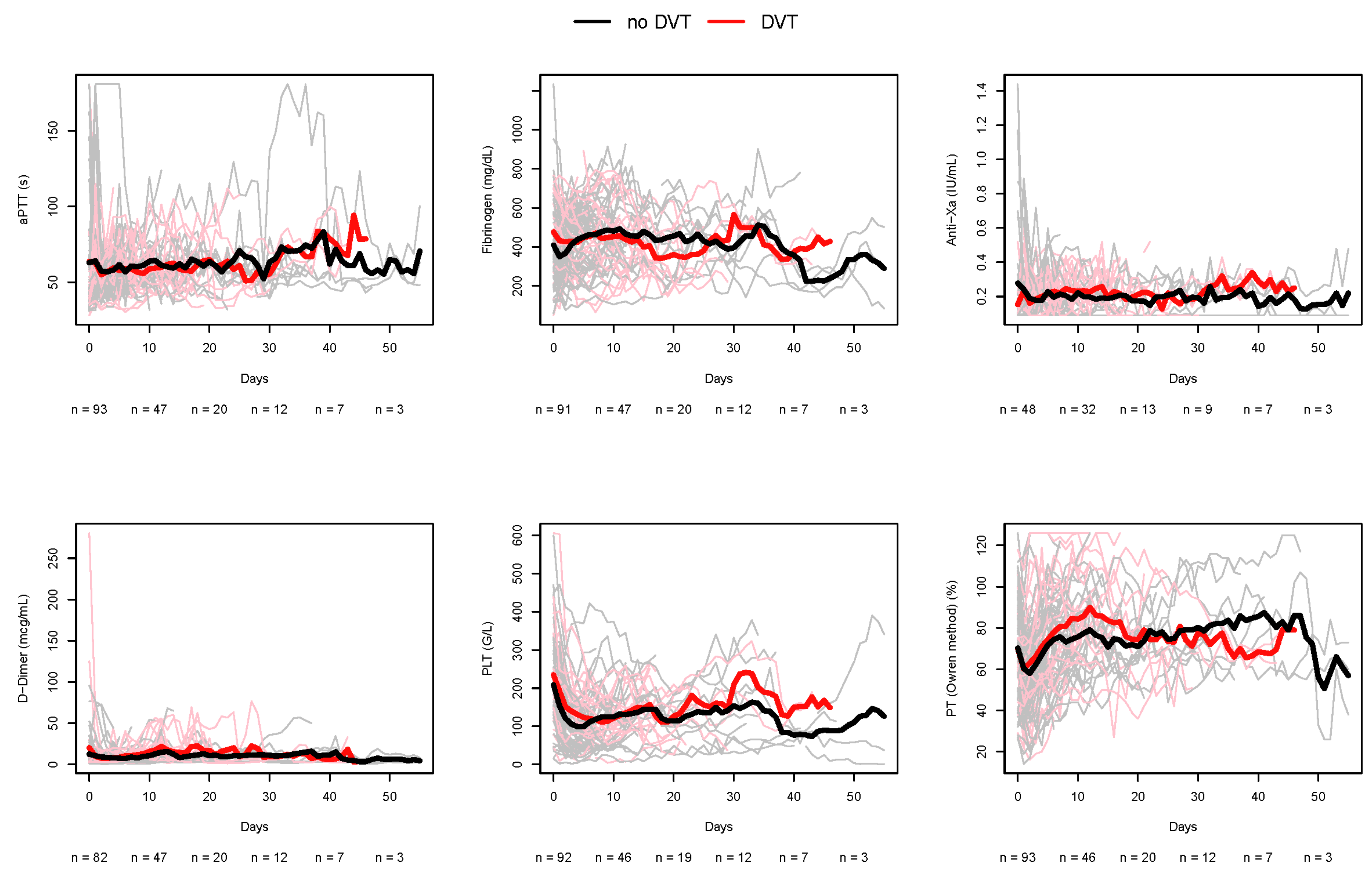 n | All (n = 101) | Overall DVT: No (n = 66) | Overall DVT: Yes (n = 35) | p | ||