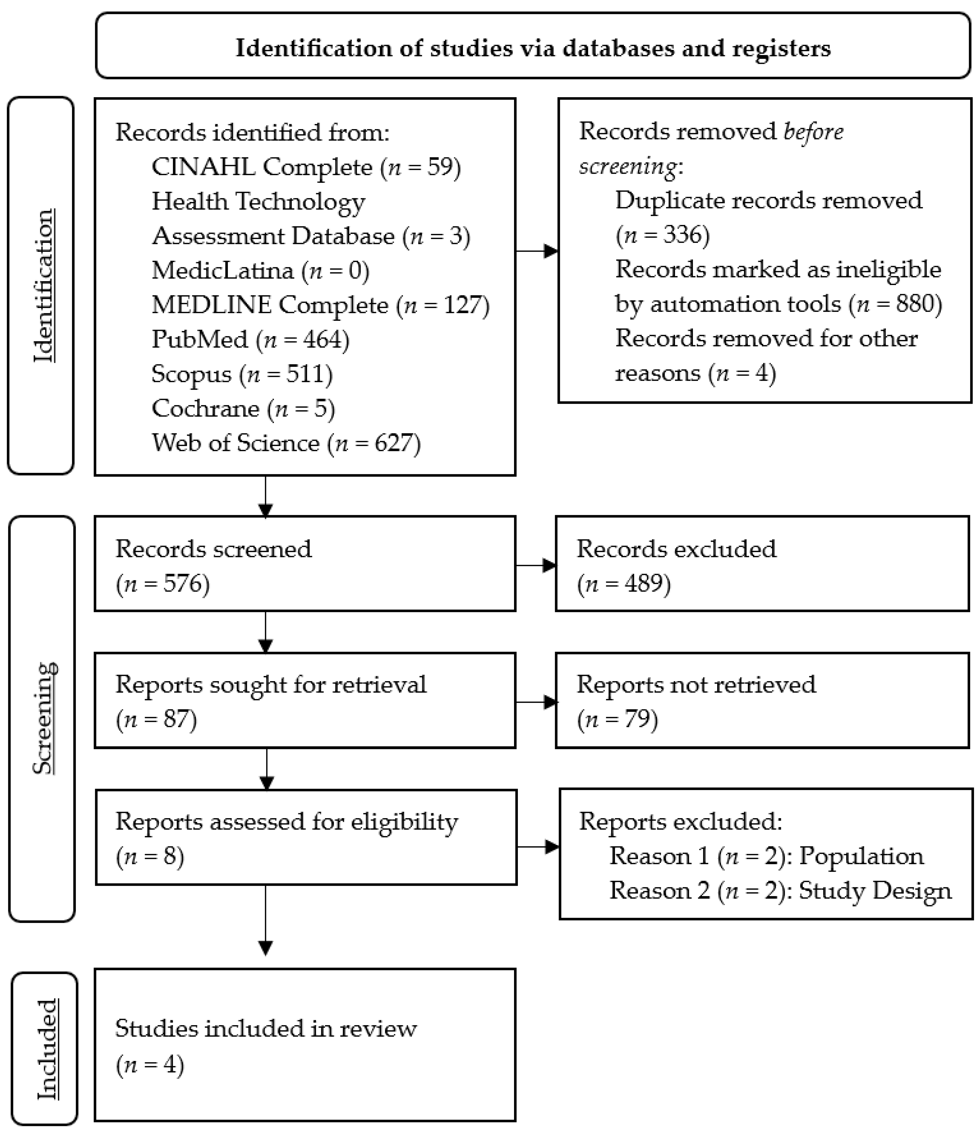 - Page, M.J.; McKenzie, J.E.; Bossuyt, P.M.; Boutron, I.; Hoffmann, T.C.; Mulrow, C.D.; Shamseer, L.; Tetzlaff, J.M.; Akl, E.A.; Brennan, S.E.; et al. The PRISMA 2020 Statement: An Updated Guideline for Reporting Systematic Reviews. BMJ 2021, 372, n71. [Google Scholar] [CrossRef]