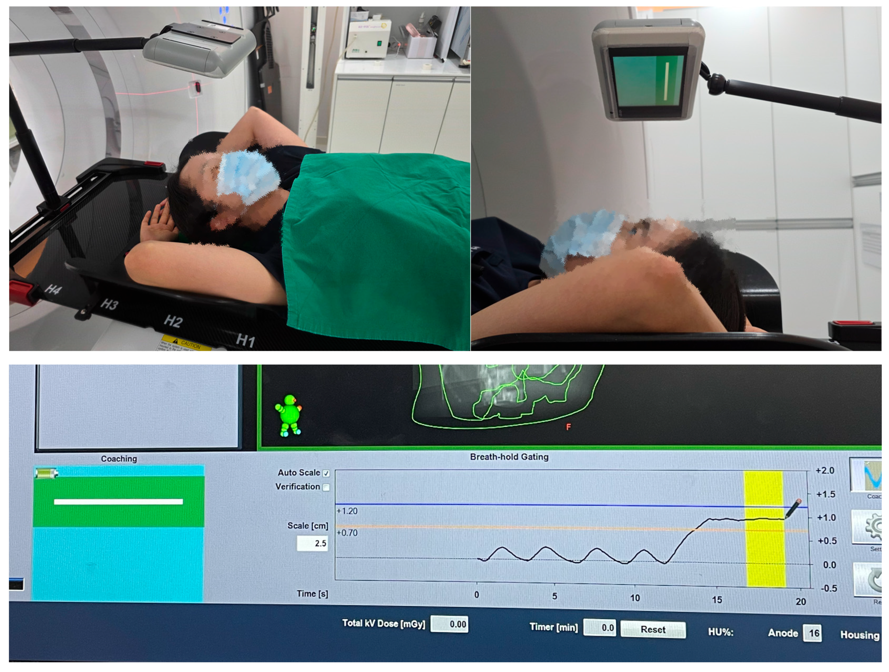 - Yu, J.; Choi, J.H.; Ma, S.Y.; Jeung, T.S.; Lim, S. Comparison between audio-only and audiovisual biofeedback for regulating patients’ respiration during four-dimensional radiotherapy. Radiat. Oncol. J. 2015, 33, 250–255. [Google Scholar] [CrossRef] [PubMed]