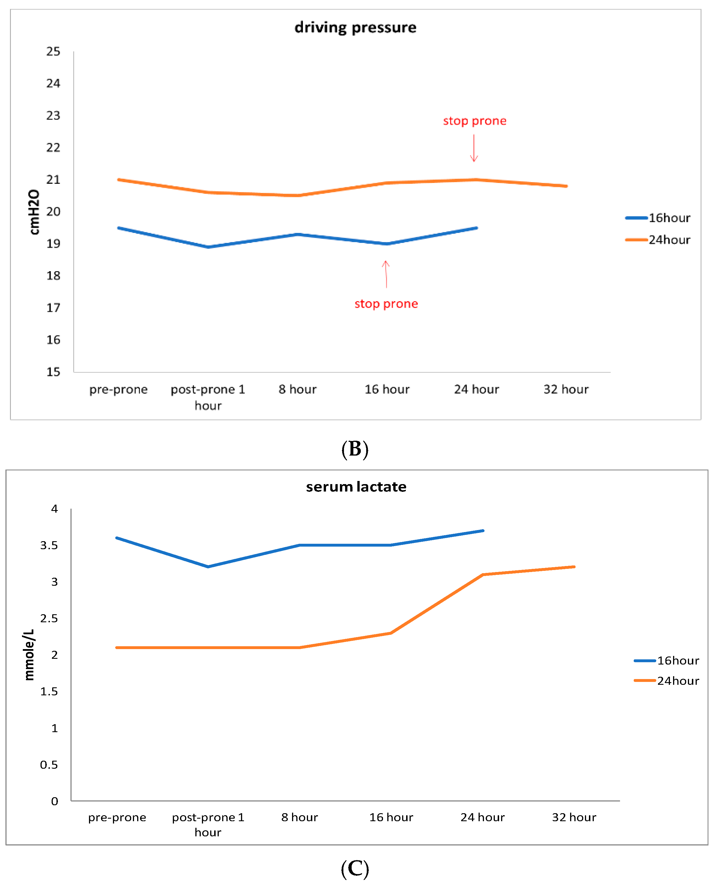 - Yan, Y.; Boa, J.; Cai, S.; Zhoung, X.; Geng, P.; Liang, J.; Deng, J.; Chen, Z.; Qin, Z.; Hu, H.; et al. The effects of prolonged prone positioning on response and prognosis in patients with acute respiratory distress syndrome: A retrospective cohor study. J. Intensive Care 2025, 13, 24. [Google Scholar] [CrossRef]