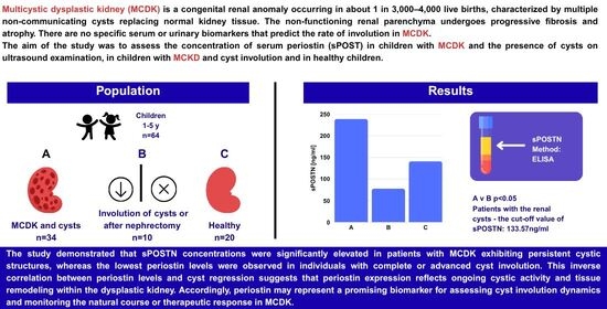 Szmigielska A, Kotuła I, Demkow U, Szmigielska MA, Tutka A. Diagnostic Value of Serum Periostin for Cyst Involution in Children with Multicystic Dysplastic Kidney. Journal of Clinical Medicine. 2025; 14(20):7264. https://doi.org/10.3390/jcm14207264