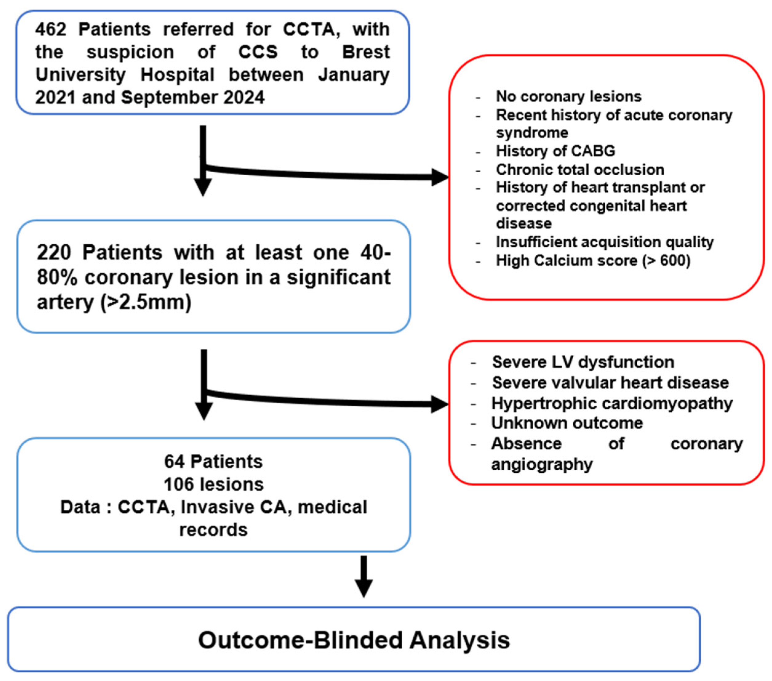 - Faulder, T.I.; Prematunga, K.; Moloi, S.B.; Faulder, L.E.; Jones, R.; Moxon, J.V. Agreement of Fractional Flow Reserve Estimated by Computed Tomography With Invasively Measured Fractional Flow Reserve: A Systematic Review and Meta-Analysis. J. Am. Heart Assoc. 2024, 13, e034552. [Google Scholar] [CrossRef]