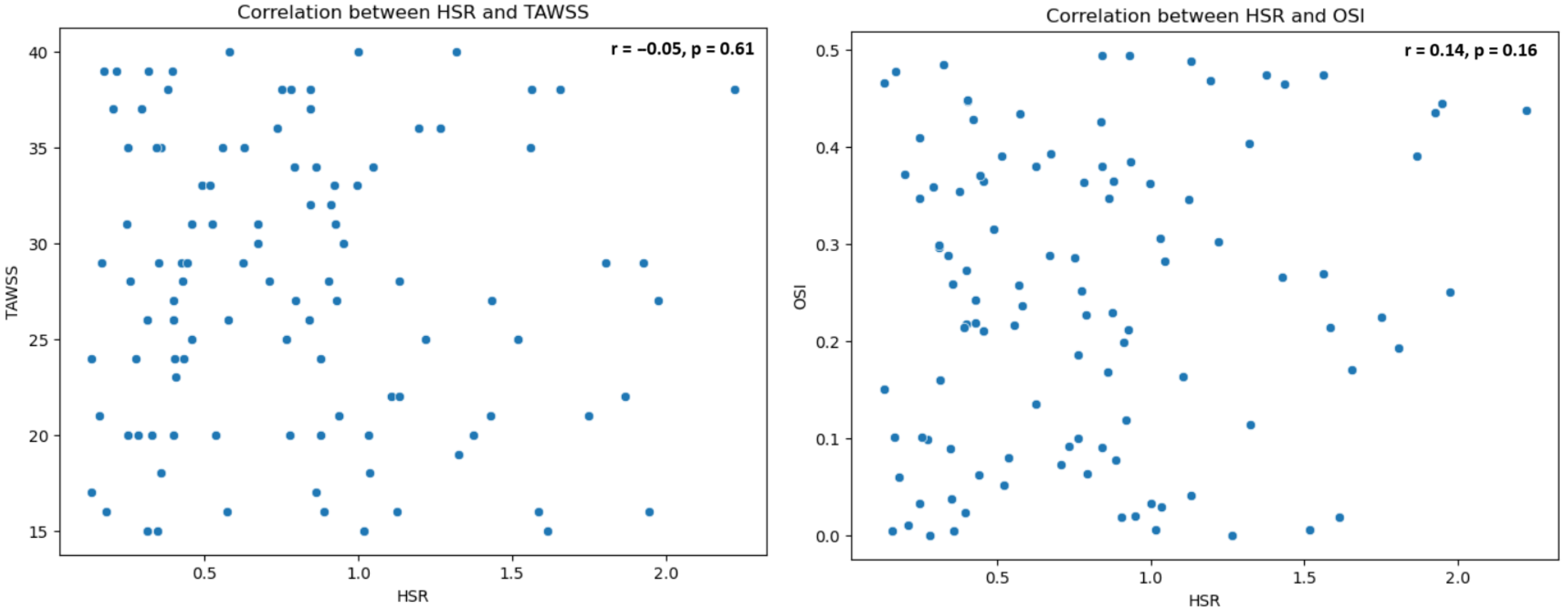 3.6. Correlation Between cHSR, TAWSS, and OSI