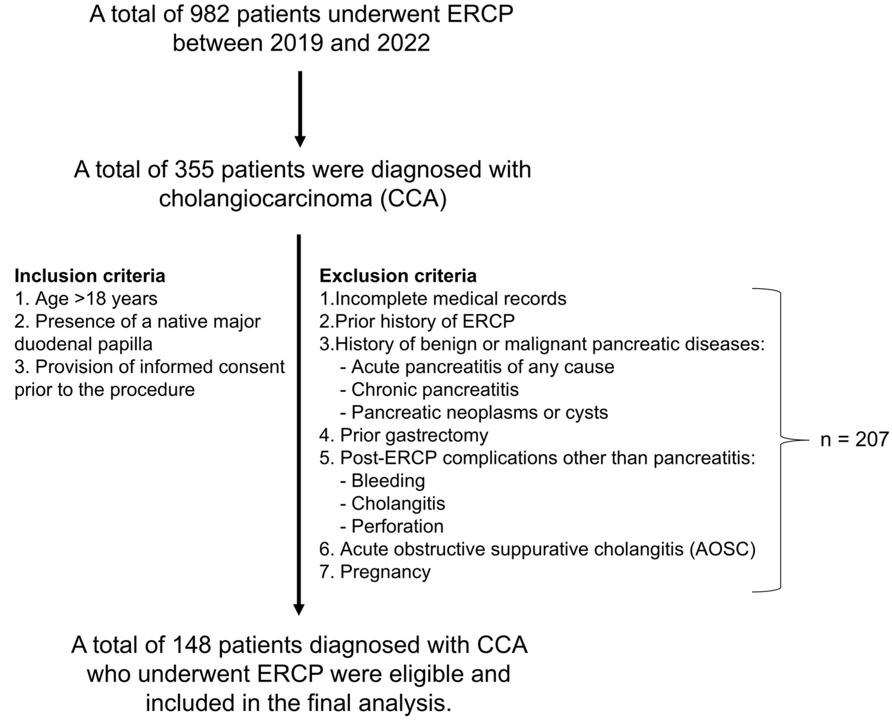 Karntaumporn T, Thanasukarn V, Srisuk T, Luvira V, Tipwaratorn T, Jareanrat A, Rattanarak K, Kraphunpongsakul K, Khuntikeo N, Chindaprasirt J, et al. Prevalence and Related Factors of Post-ERCP Pancreatitis in Cholangiocarcinoma Patients: A Retrospective Study in Northeast Thailand. Journal of Clinical Medicine. 2025; 14(20):7286. https://doi.org/10.3390/jcm14207286