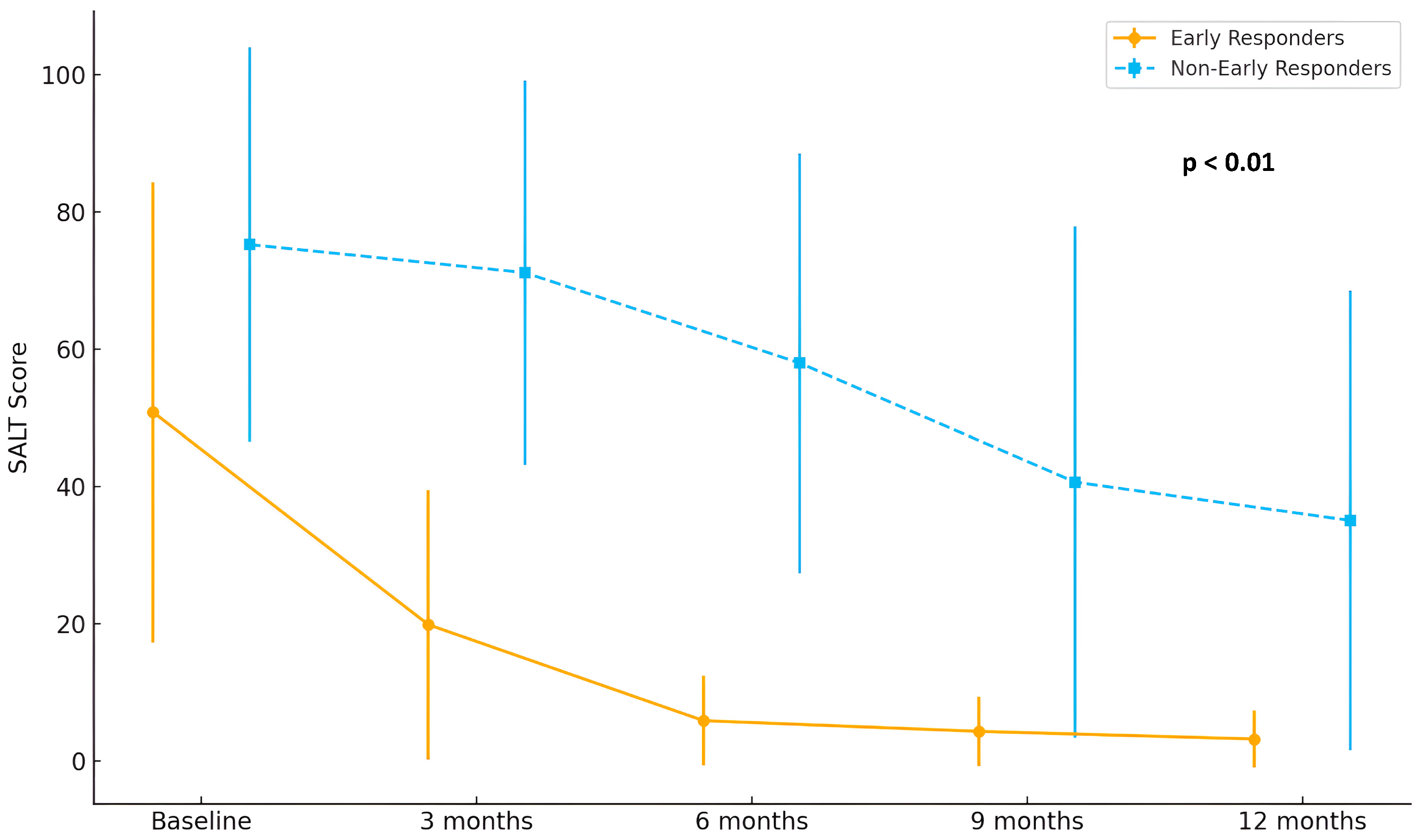 - The inability to reach a SALT score < 20% within the first 6 months of treatment.