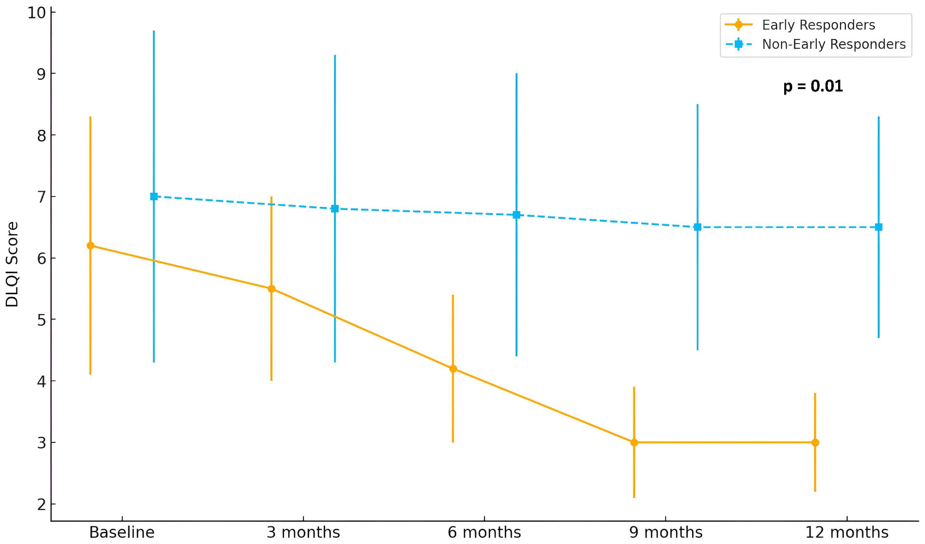 SALT score reduction after 9 months of treatment (%) | 50.42 ± 9.81 | 35.60 ± 8.25 | 0.12 |