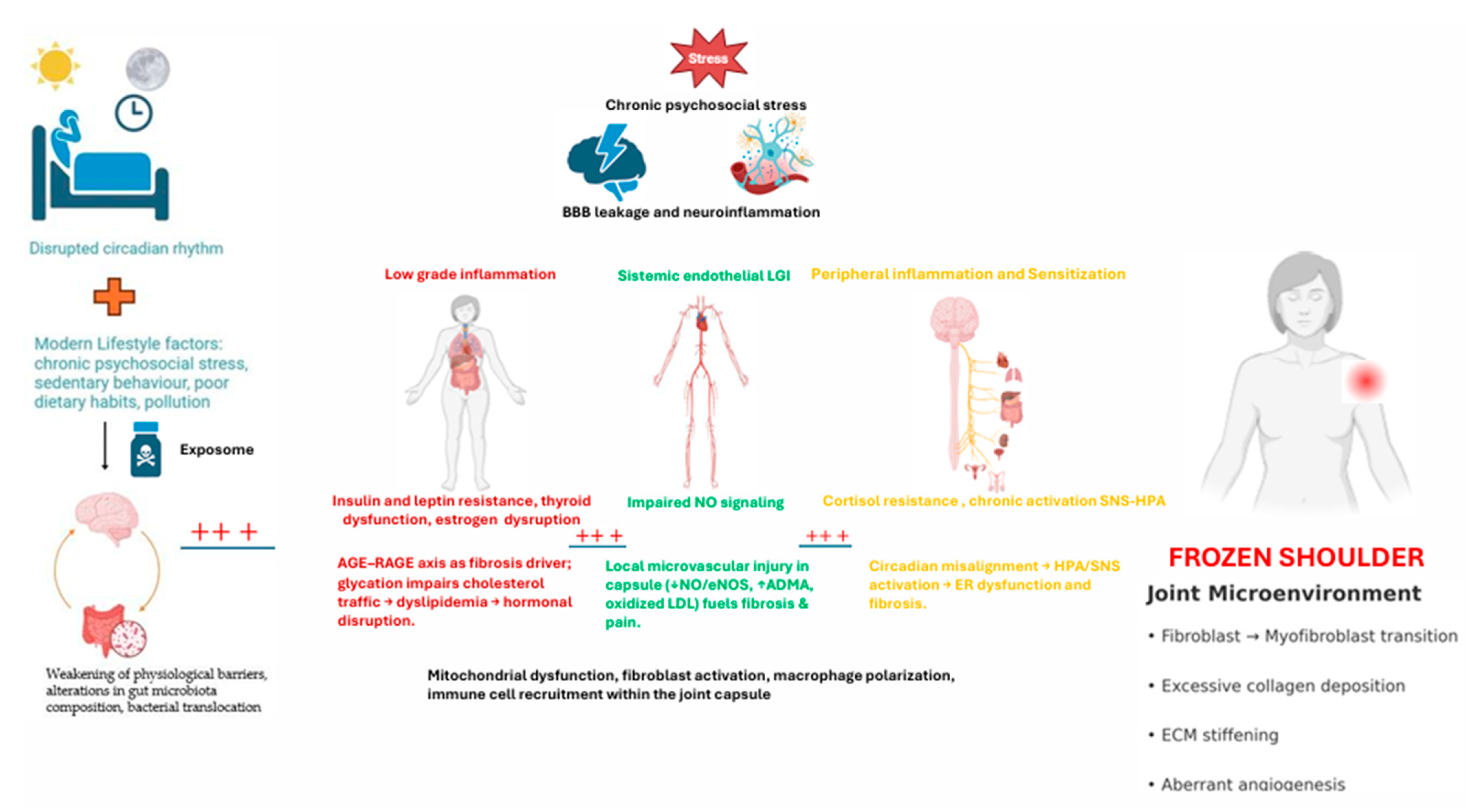 Navarro-Ledesma, S. Frozen Shoulder as a Systemic Immunometabolic Disorder: The Roles of Estrogen, Thyroid Dysfunction, Endothelial Health, Lifestyle, and Clinical Implications. J. Clin. Med. 2025, 14, 7315. https://doi.org/10.3390/jcm14207315