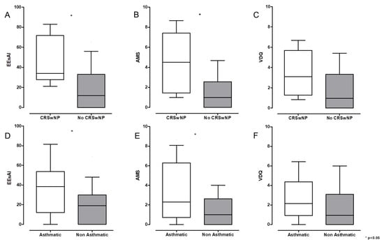 - Stevens, W.W.; Peters, A.T.; Hirsch, A.G.; Nordberg, C.M.; Schwartz, B.S.; Mercer, D.G.; Mahdavinia, M.; Grammer, L.C.; Hulse, K.E.; Kern, R.C.; et al. Clinical Characteristics of Patients with Chronic Rhinosinusitis with Nasal Polyps, Asthma, and Aspirin-Exacerbated Respiratory Disease. J. Allergy Clin. Immunol. Pract. 2017, 5, 1061–1070.e3. [Google Scholar] [CrossRef]