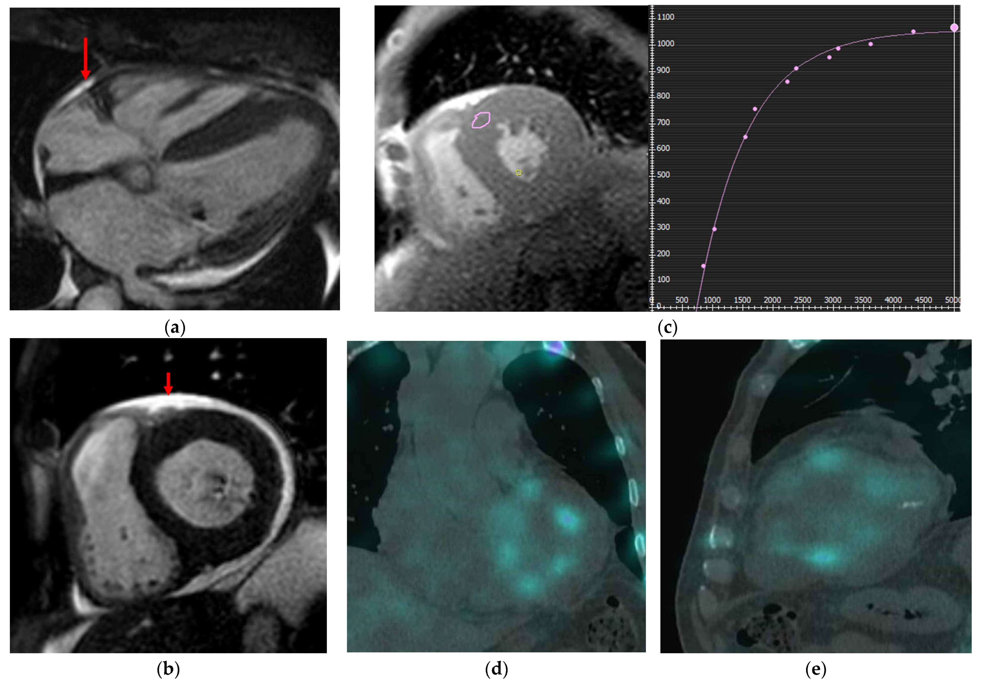 - Leiner, T.; Bogaert, J.; Friedrich, M.G.; Mohiaddin, R.; Muthurangu, V.; Myerson, S.; Powell, A.J.; Raman, S.V.; Pennell, D.J. SCMR Position Paper (2020) on clinical indications for cardiovascular magnetic resonance. J. Cardiovasc. Magn. Reson. 2020, 22, 76. [Google Scholar] [CrossRef]