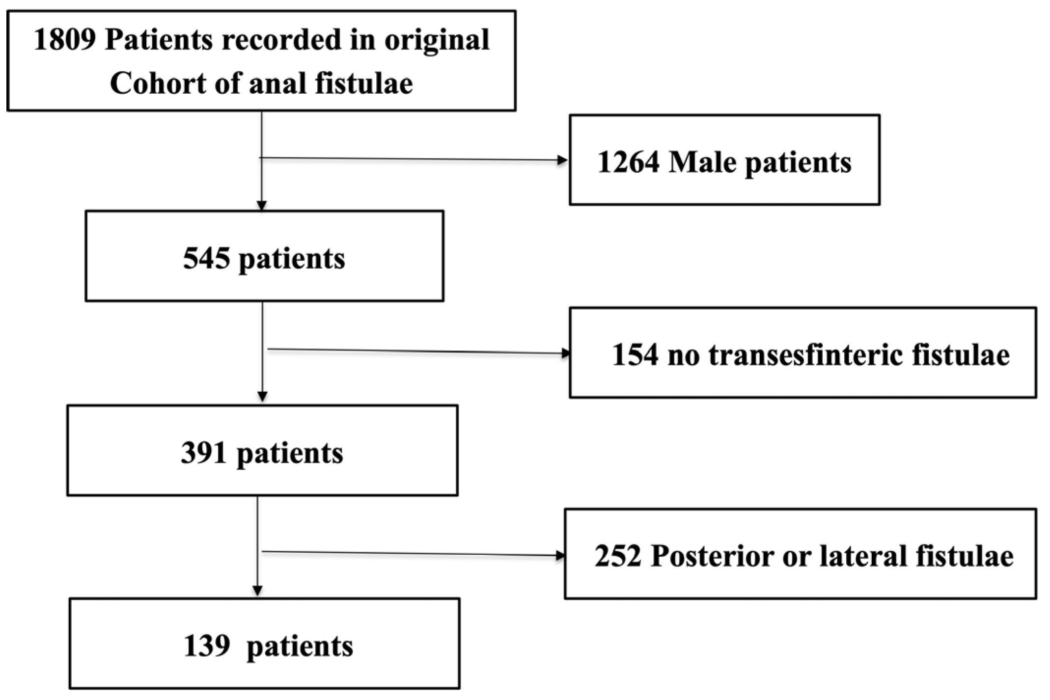 - Mei, Z.; Wang, Q.; Zhang, Y.; Liu, P.; Ge, M.; Du, P.; Yang, W.; He, Y. Risk Factors for Recurrence after anal fistula surgery: A meta-analysis. Int. J. Surg. 2019, 69, 153–164. [Google Scholar] [CrossRef]