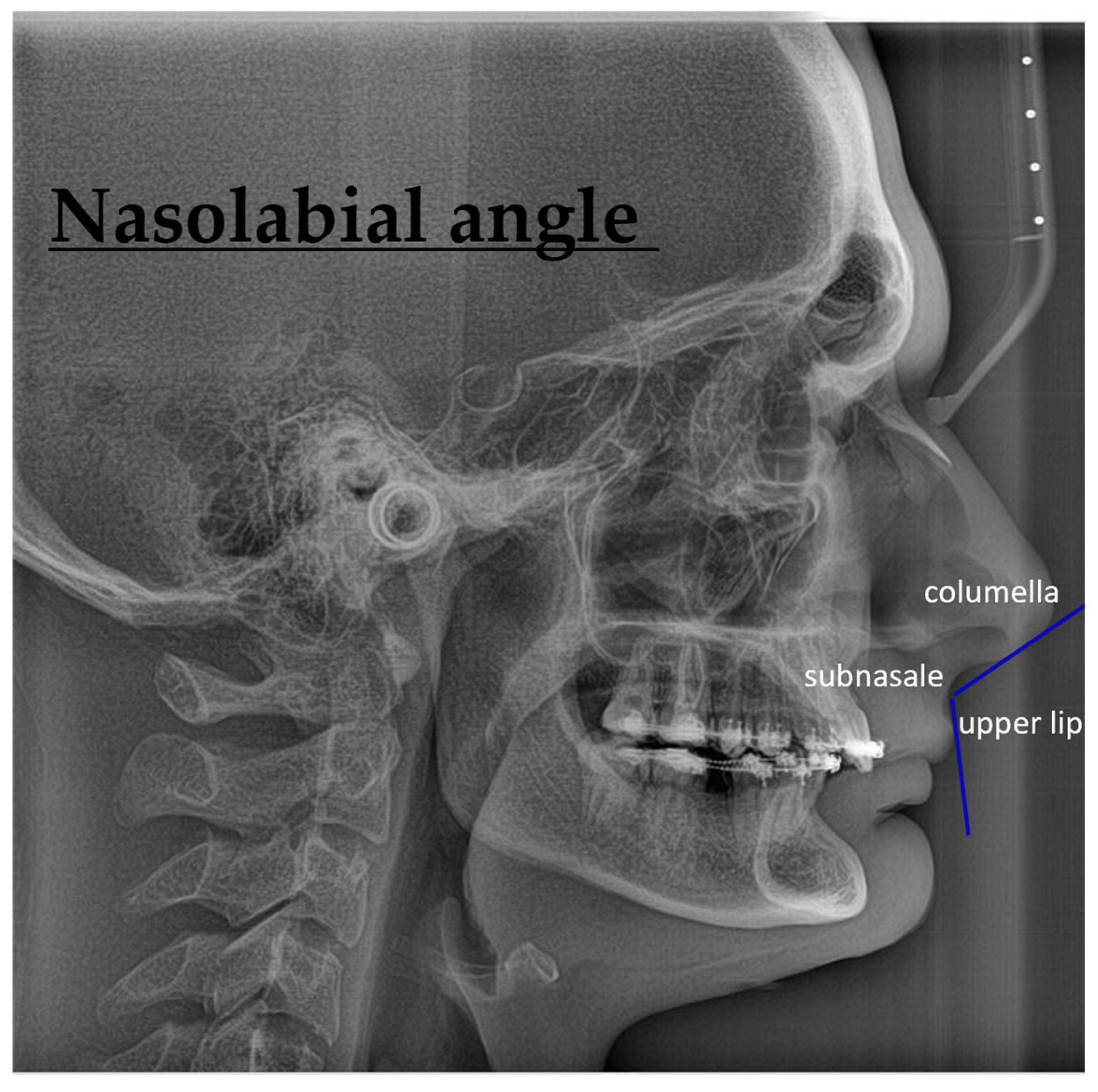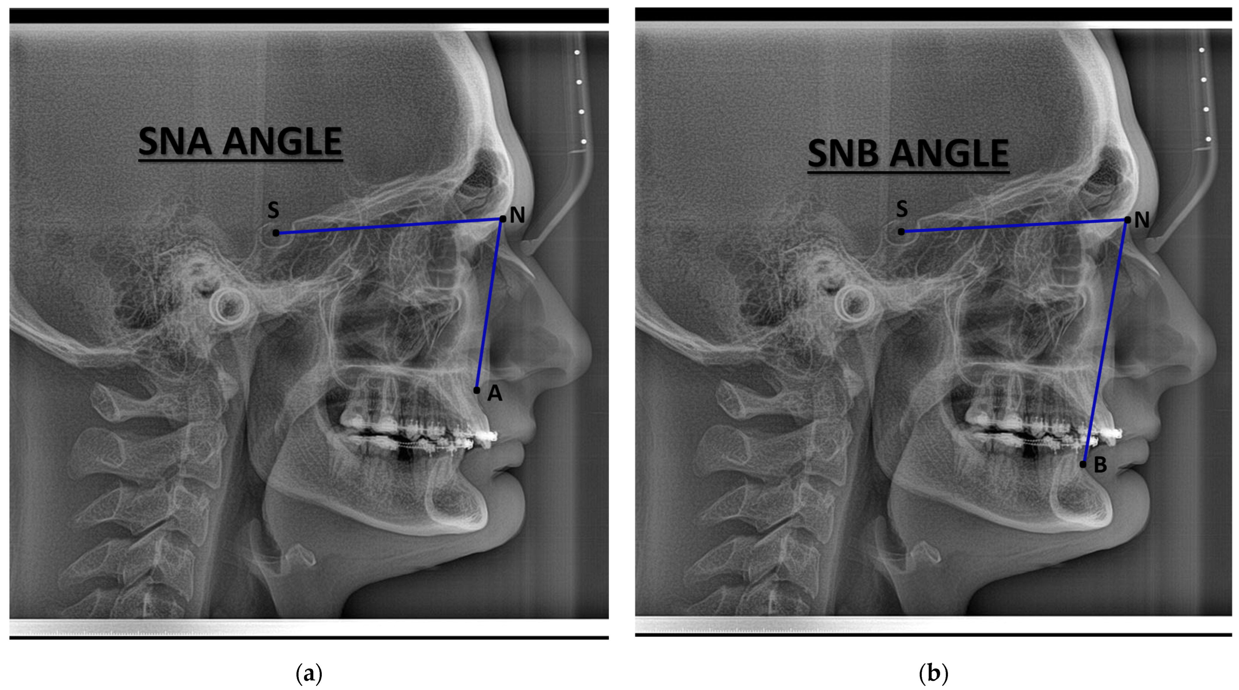 - Koz, S.; Uslu-Akcam, O. Artificial Intelligence-Supported and App-Aided Cephalometric Analysis: Which One Can We Trust? Diagnostics 2025, 15, 559. [Google Scholar] [CrossRef]