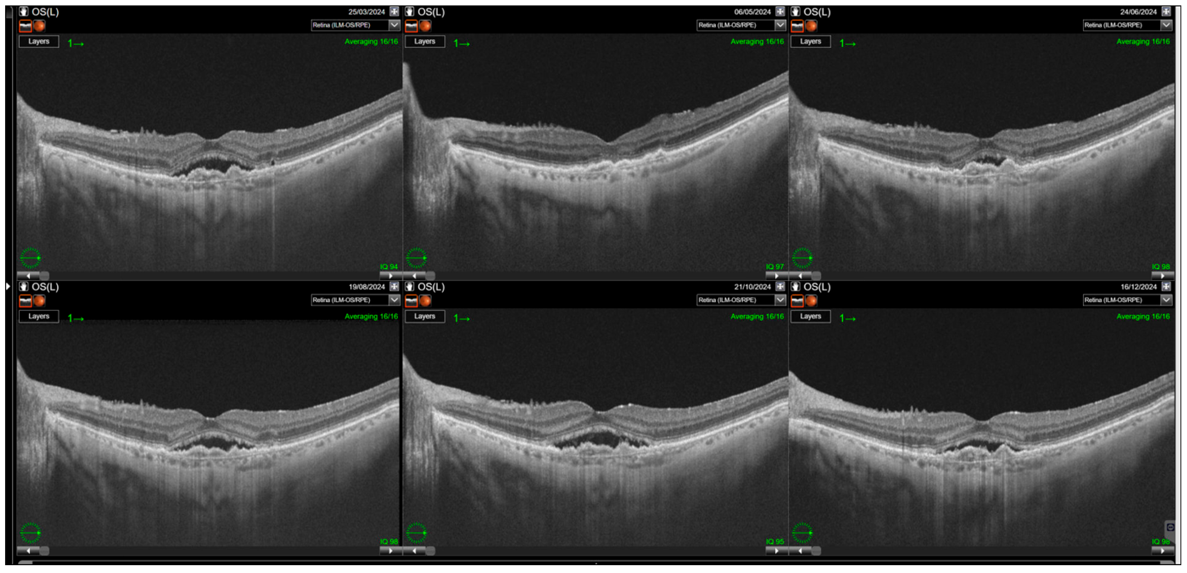 - Chan, H.H.; Feo, A.; Cabral, D.; Bousquet, E.; Popovic, M.M.; Marin, A.I.; Quarta, A.; El-Haig, W.M.; Teo, K.Y.C.; Tan, A.C.S.; et al. Type 4 macular neovascularization (NV): A new member of the optical coherence tomography (OCT) classification of NV age-related macular degeneration (AMD). Retina, 2025; ahead of print. [Google Scholar] [CrossRef]