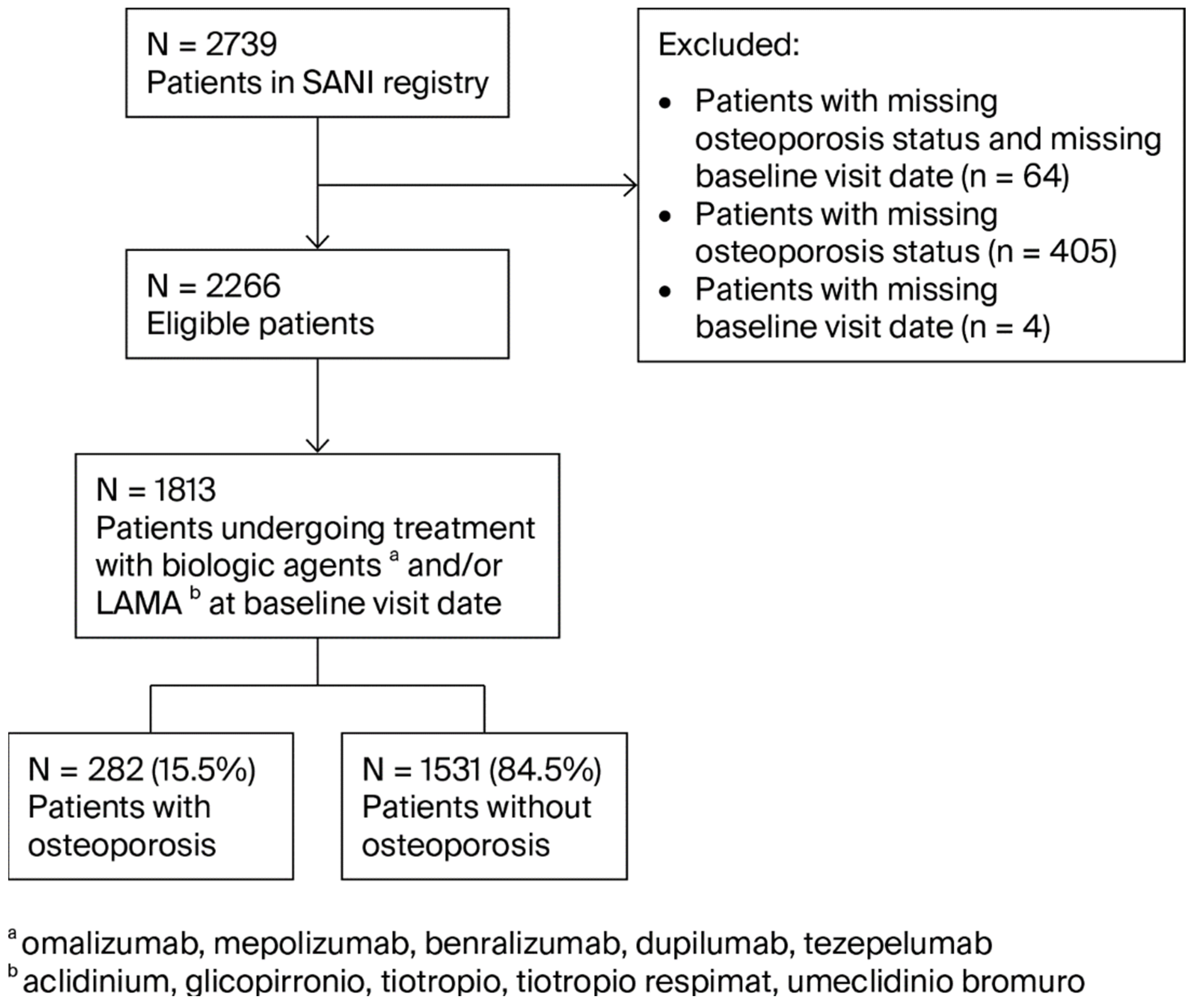Latorre M, Costanzo G, Ledda AG, Sambugaro G, Cardini C, Sala I, Oriecuia C, Bagnardi V, Blasi F, Paggiaro P, et al. Osteoporosis in Severe Asthmatic Patients: Data from the Severe Asthma Network in Italy (SANI) Registry. Journal of Clinical Medicine. 2025; 14(20):7387. https://doi.org/10.3390/jcm14207387