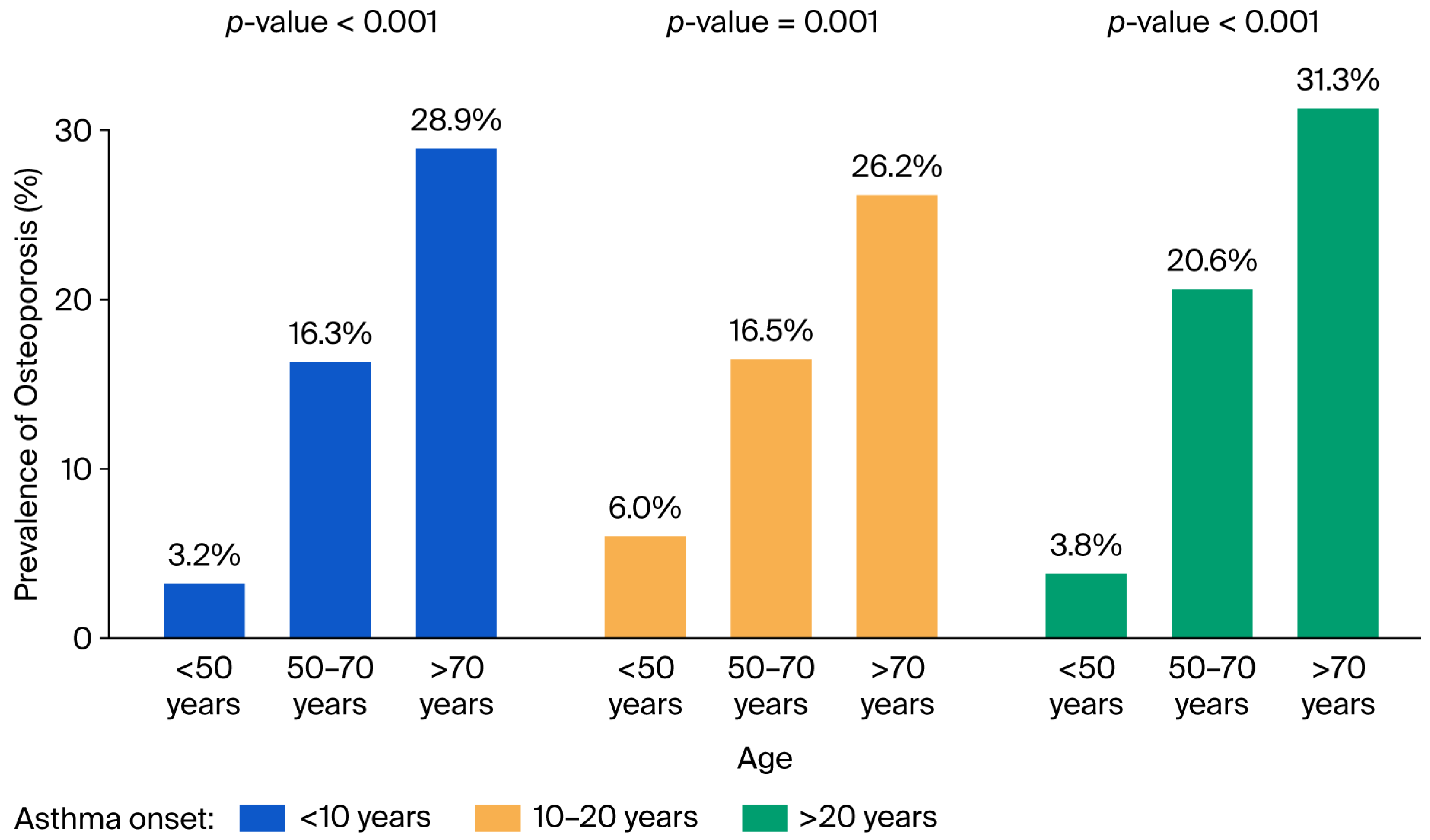 - Ding, W.; Huang, Y.; Li, G.; Dong, Y.; Li, X.; Wu, M.; Song, K.; Li, F. Higher risk of osteoporosis in adult-onset asthma than childhood-onset asthma: From genetic and prospective evidence. Osteoporos. Int. 2024, 35, 659–668. [Google Scholar] [CrossRef]