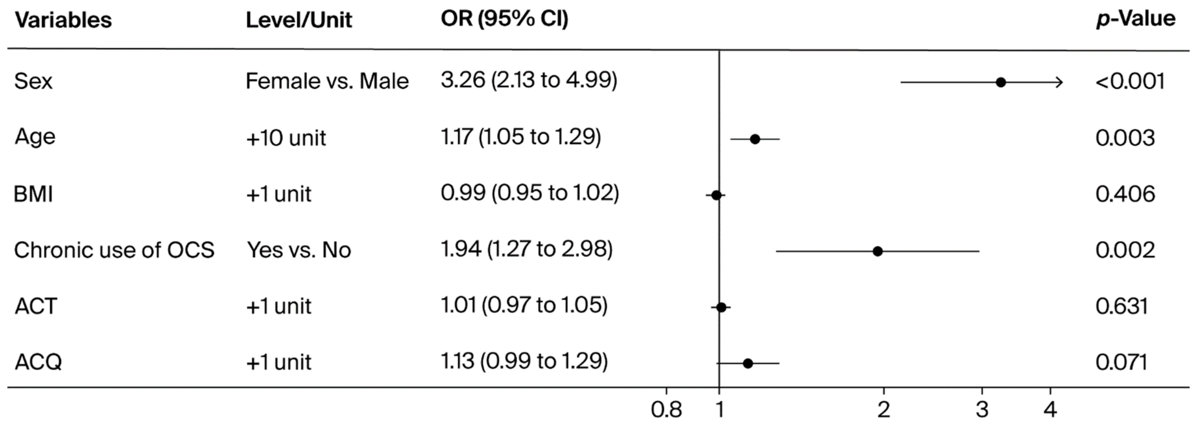 | ACQ, mean (SD) | 2.5 (1.6) | 2.0 (1.6) | 0.015 |