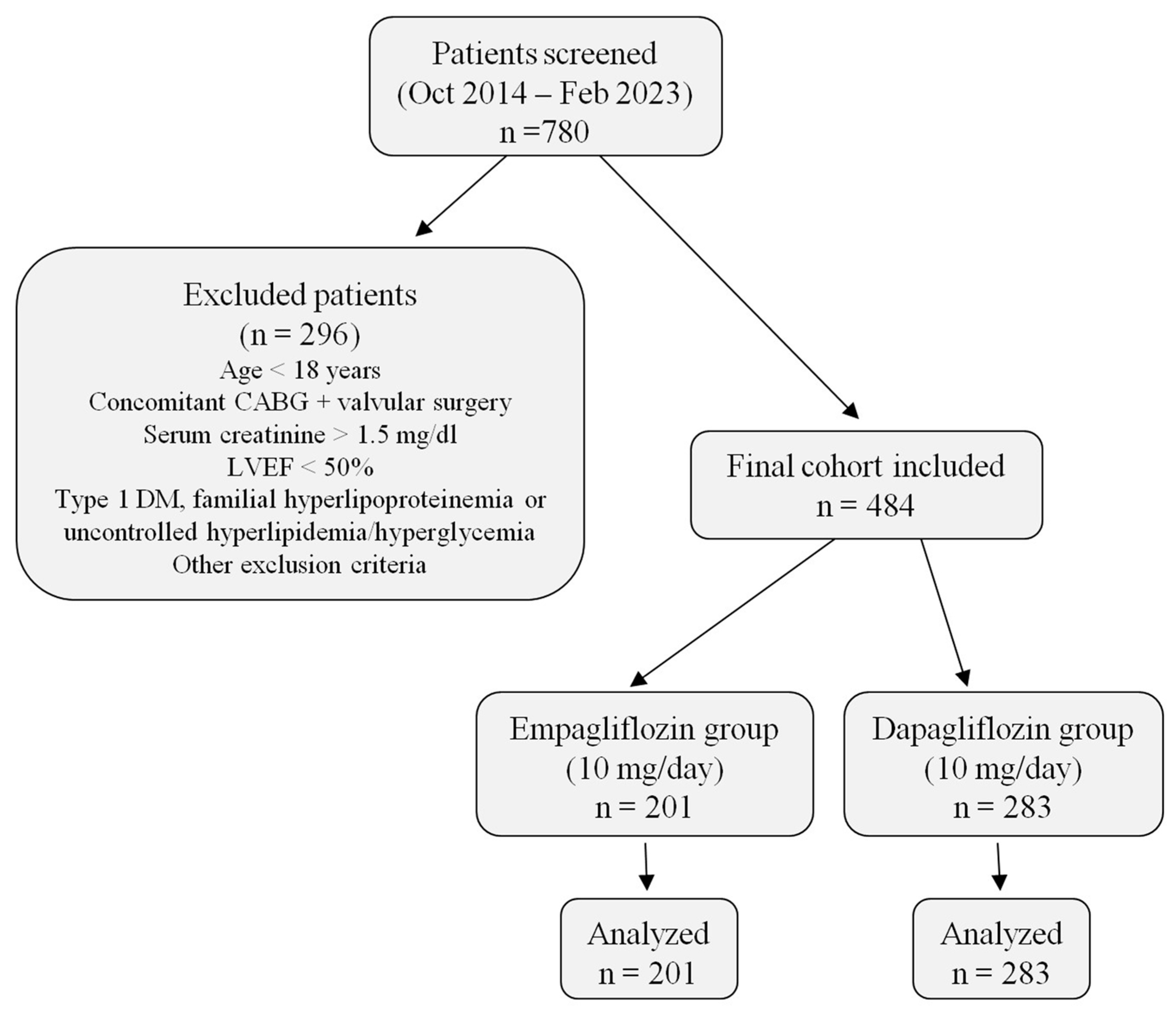 Chicago/Turabian StyleOzgol, Ilhan, Ece Yigit Gencer, Cennet Yildiz, Dilay Karabulut, Fatma Nihan Turhan Çaglar, Burcu Bicakhan, Cihan Yucel, Serkan Ketenciler, Asime Ay, and Zerrin Yigit. 2025. "Effects of Empagliflozin and Dapagliflozin on Lipid Profiles and Atherogenic Risk Indices in Patients with Heart Failure and a History of CABG: First Evidence in the Literature" Journal of Clinical Medicine 14, no. 20: 7395. https://doi.org/10.3390/jcm14207395