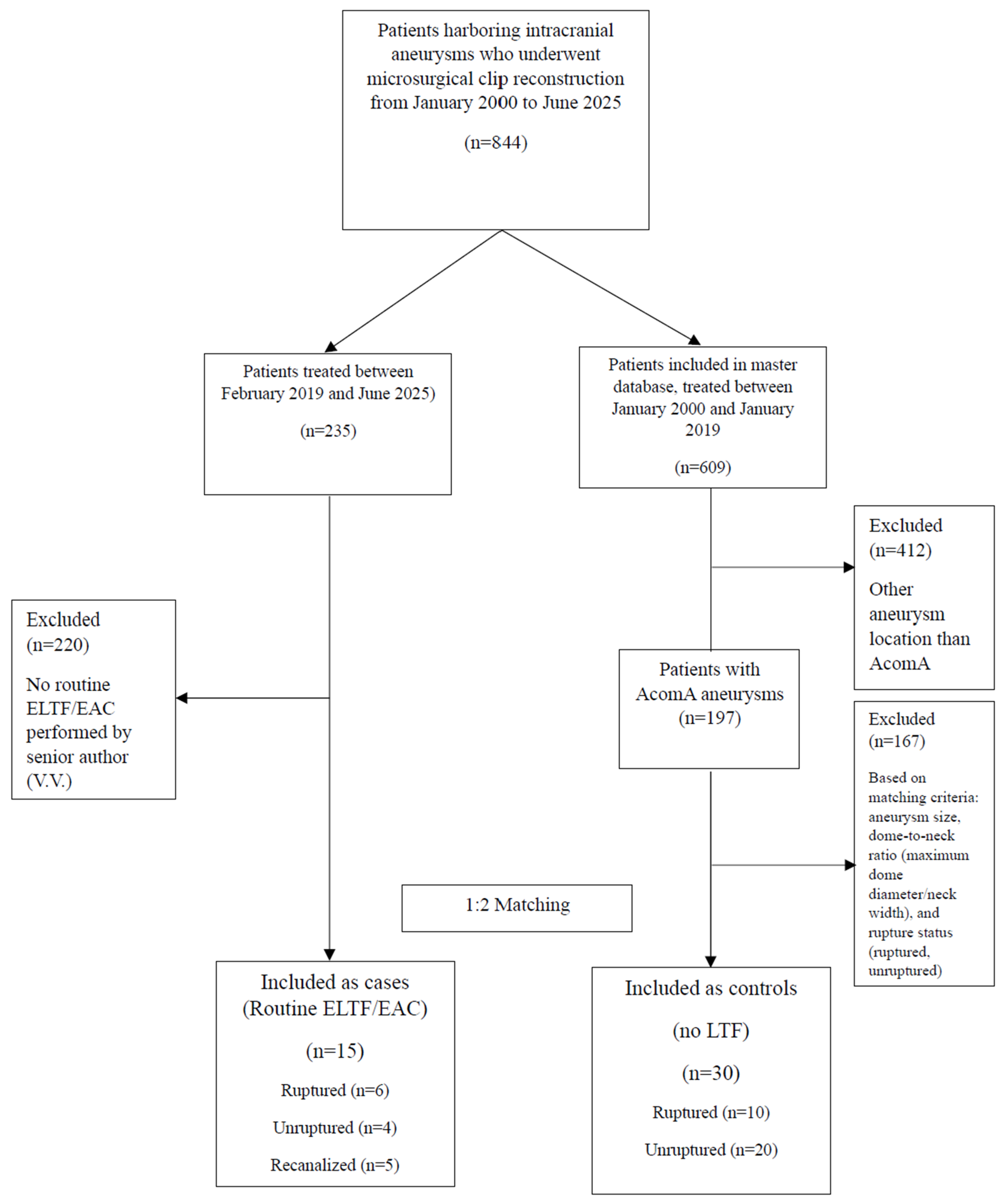 Sadigh, Y.; Schouten, J.W.; van Putten, E.H.P.; Dammers, R.; Volovici, V. Preliminary Experience with Extradural Clinoidectomy and Lamina Terminalis Fenestration in Anterior Communicating Artery Aneurysm Surgery: A Matched Case–Control Study. J. Clin. Med. 2025, 14, 7413. https://doi.org/10.3390/jcm14207413