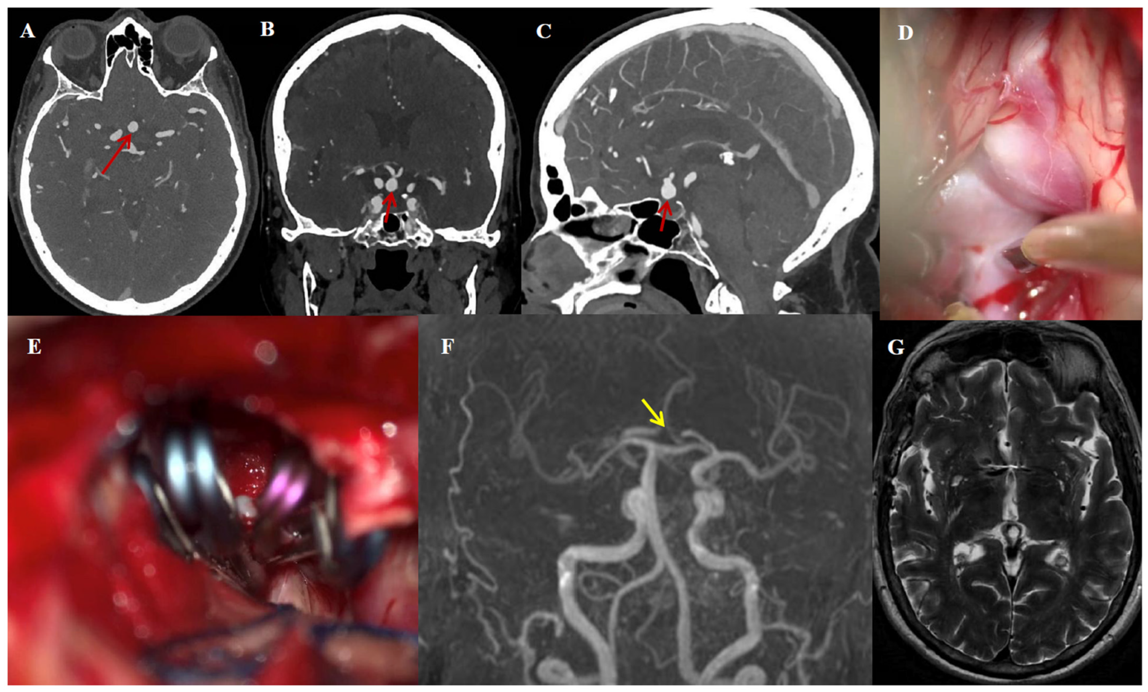 - Chen, J.; Li, M.; Zhu, X.; Chen, Y.; Zhang, C.; Shi, W.; Chen, Q.; Wang, Y. Anterior Communicating Artery Aneurysms: Anatomical Considerations and Microsurgical Strategies. Front. Neurol. 2020, 11, 1020. [Google Scholar] [CrossRef] [PubMed]