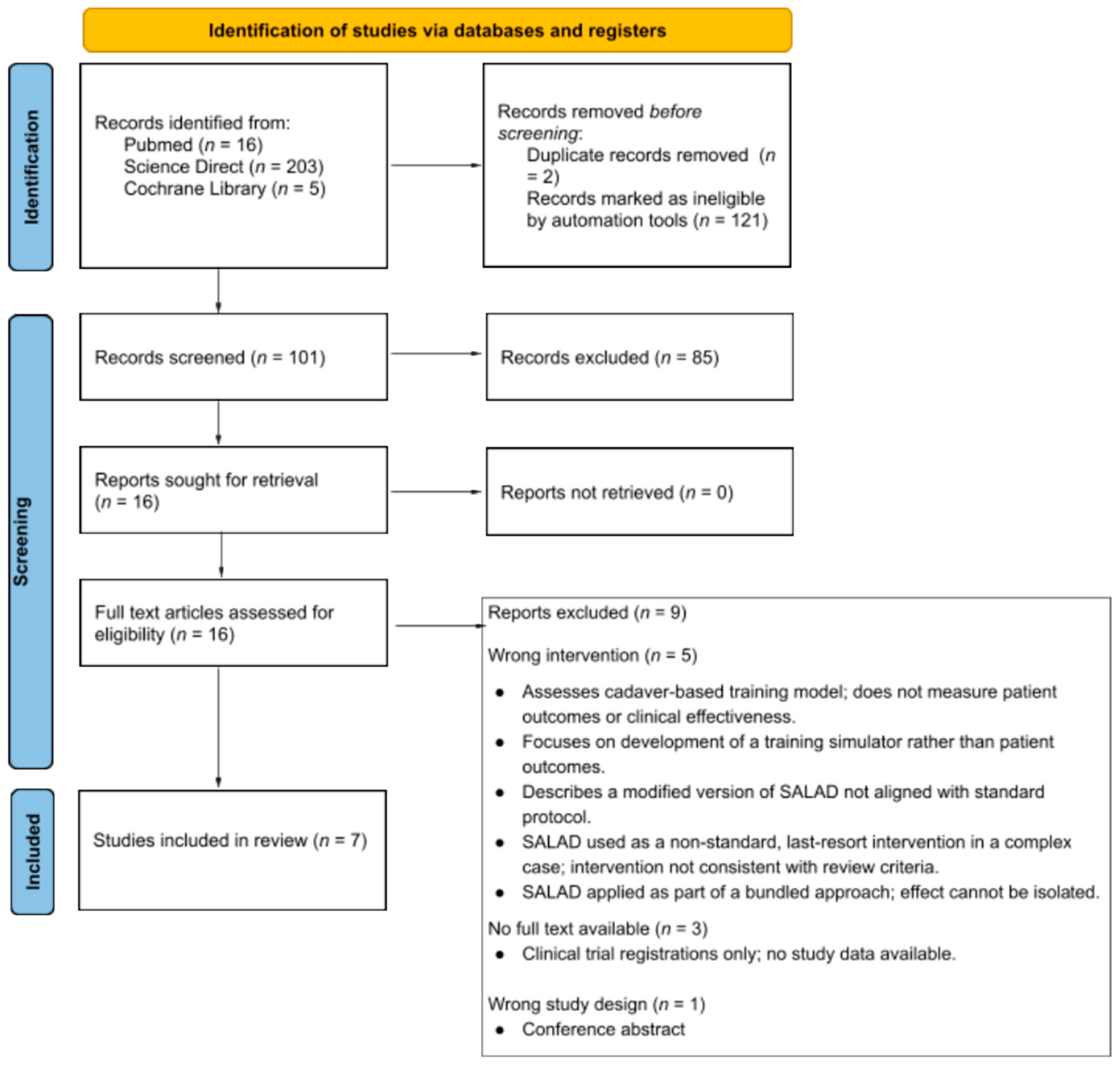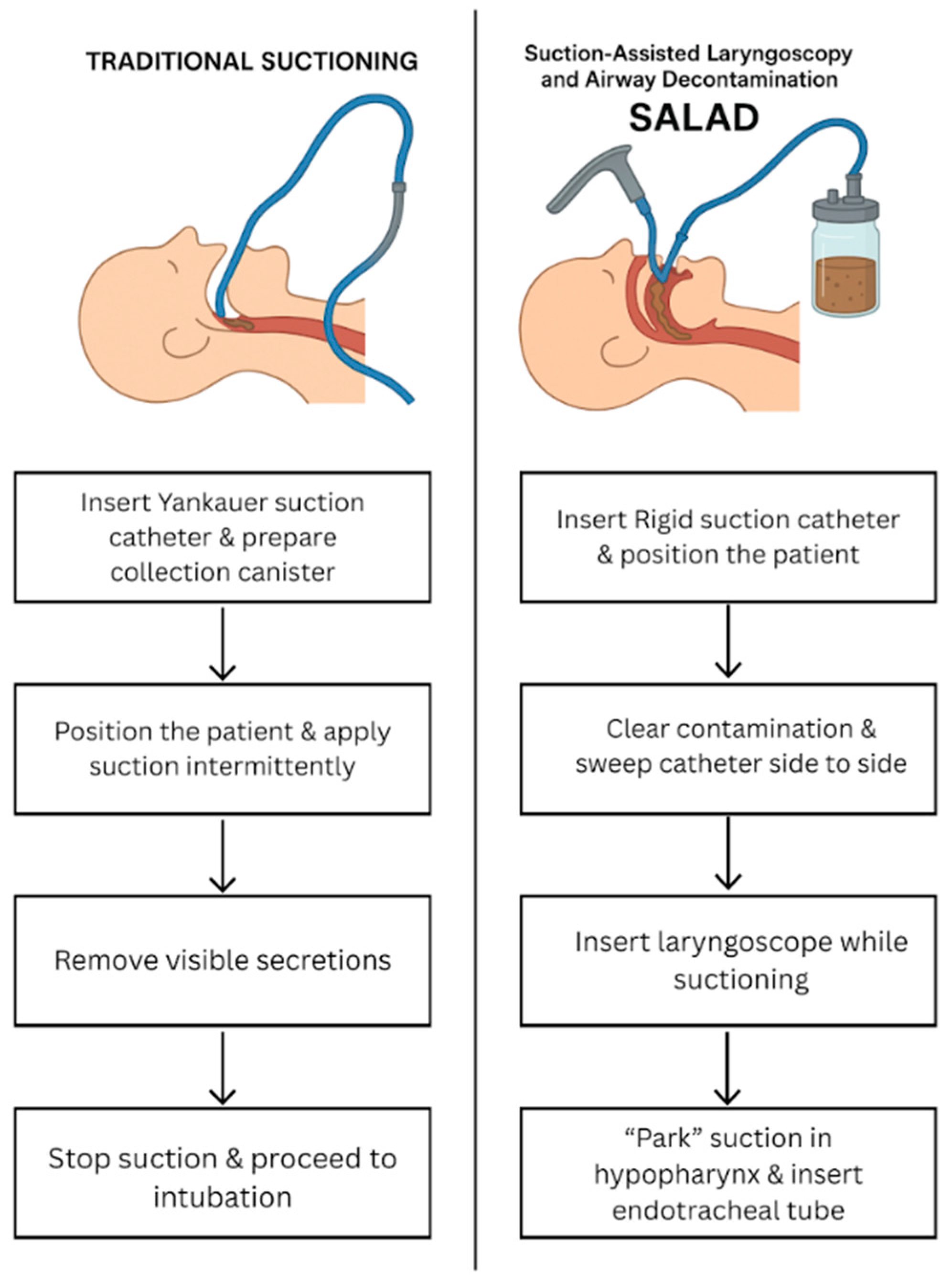 Shaikh, S.; Hejazi, H.; Shaikh, S.; Sajid, A.; Shahab, R.; Deed, A.; Afnan, R.; Hashmi, A.; Sharieff, R.E.A.; Naureen, A.; et al. Suction-Assisted Laryngoscopy and Airway Decontamination (SALAD) for Emergency Airway Management: A Systematic Review of Evidence and Implementation. J. Clin. Med. 2025, 14, 7430. https://doi.org/10.3390/jcm14207430