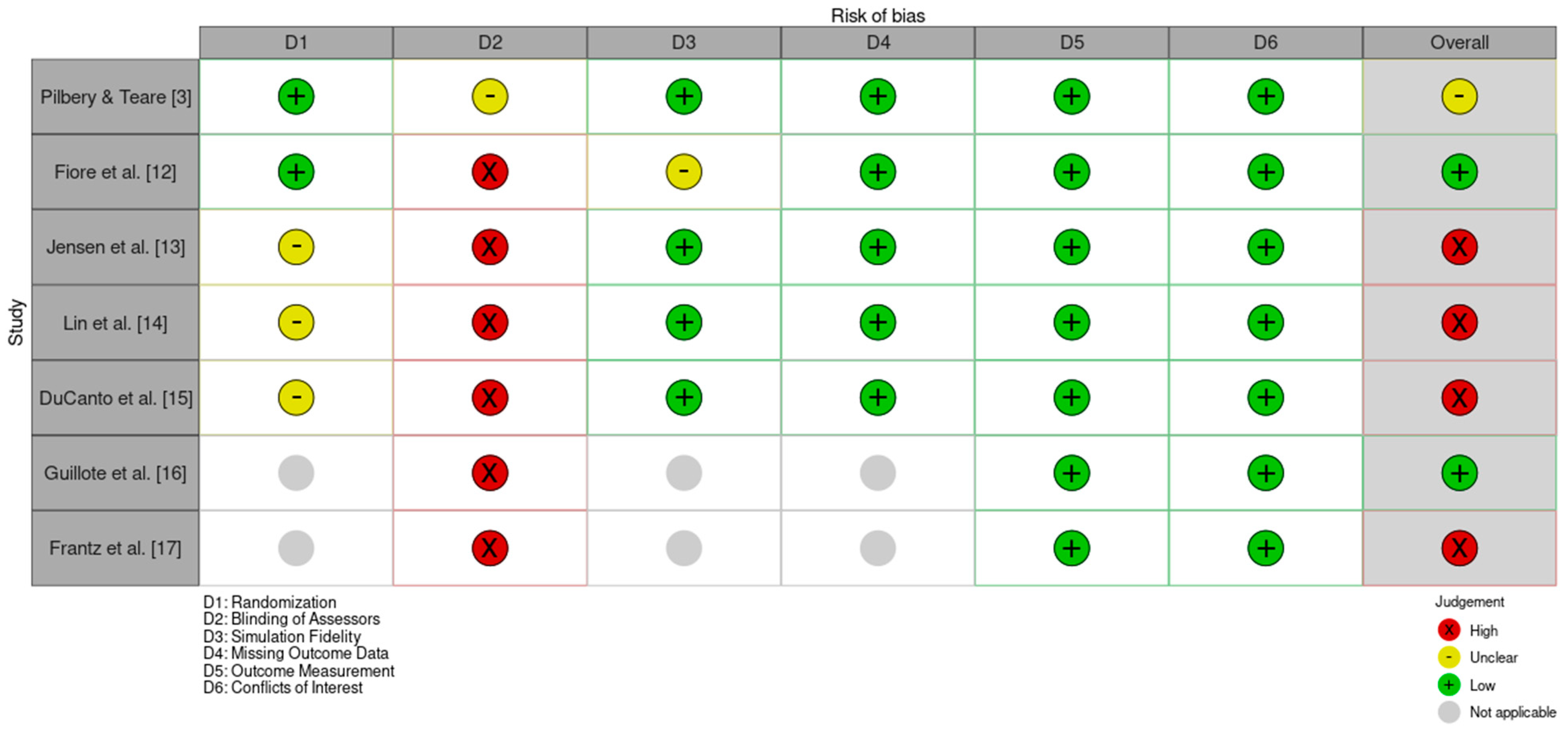 | Simulation (observational, 1 study) | Serious | Not serious | Serious | Very serious | Not serious | Maintained skills at 3 months | ⨁◯◯◯ Very low |