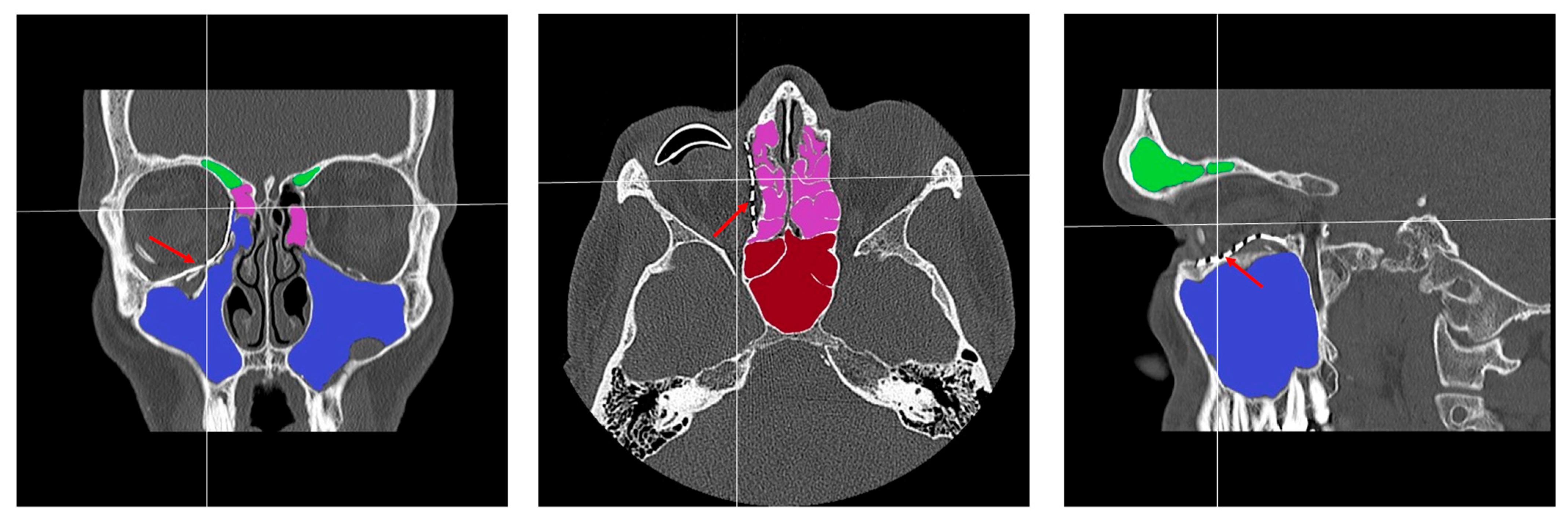 - Patent ostium of the maxillary sinus (coronal plane)