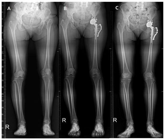 With recent advancements in diagnostic technology, the early diagnosis of DDH and SSH has become possible. However, the late diagnosis of DDH is still prevalent and has not shown a decline [], and diagnosing septic arthritis of the hip in neonates remains challenging due to the lack of signs and symptoms []. Additionally, the incidence of adult-onset septic arthritis of the hip is also on the rise due to the increasing elderly population, the growing number of diabetic patients, the increasing number of immunocompromised individuals, and the prevalence of Methicillin-resistant Staphylococcus aureus [,]. A highly dislocated hip, which can occur in the terminal stage of patients with hip joint diseases, results in hip instability with pain, LLD, low back pain, and knee pain. These complications significantly disrupt the static balance of patients’ bodies. THA for a highly dislocated hip is technically challenging due to a dysplastic acetabulum with deficient bone stock, the small diameter of the femoral canal, abnormal anteversion, contracture of the soft tissue surrounding the hip joint, severe flexion deformities, joint stiffness, and limb length discrepancy [,]. Nevertheless, THA has shown excellent clinical outcomes as a treatment method for a highly dislocated hip [,,,,].