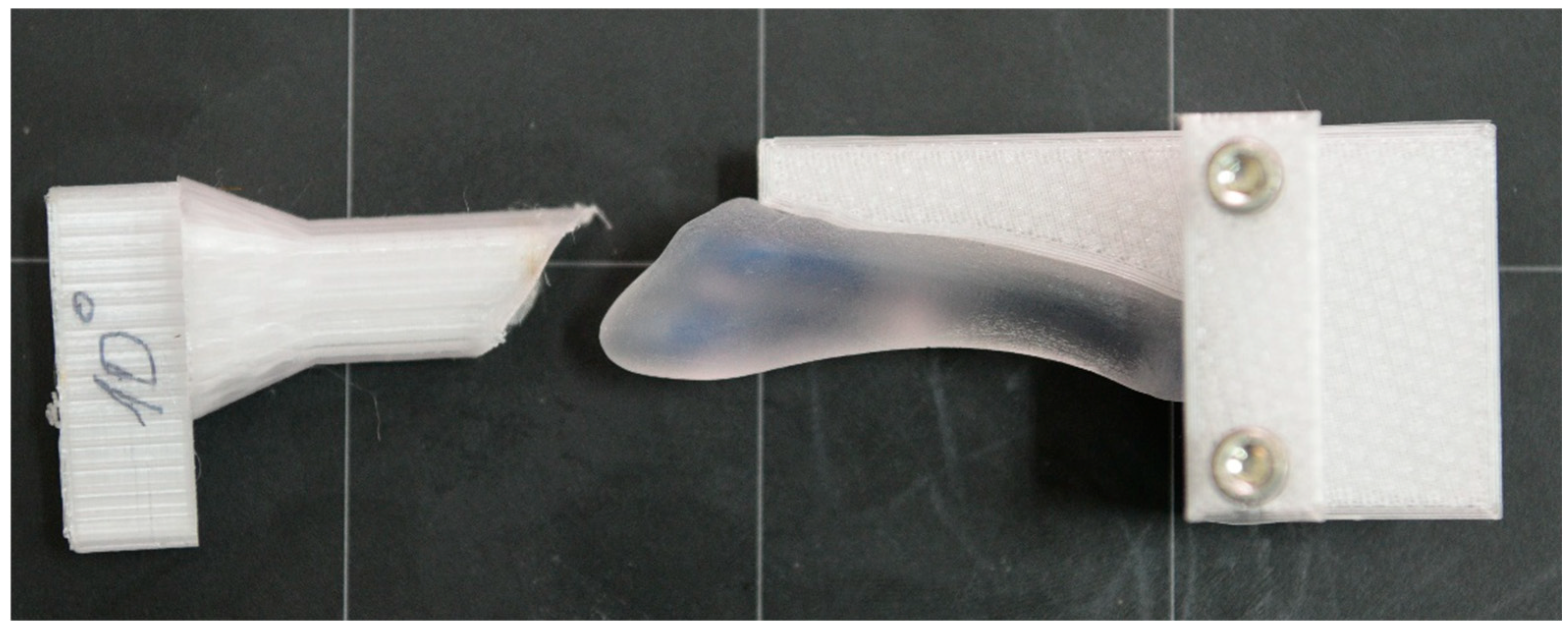 anisotropy of the material: the structures made using PolyJet technology present uniform mechanical properties, which does not reflect the heterogeneity of human bone tissue. This difference may influence the interaction between the implant and the bone.
